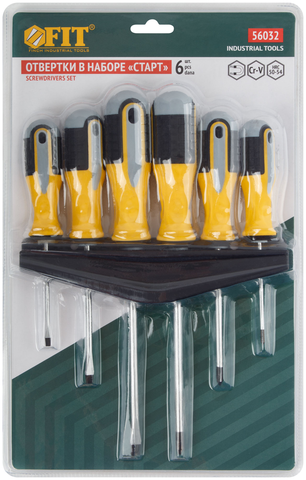 Отвертки "Старт", CrV сталь, прорезиненные ручки, на держателе, набор 6 шт.