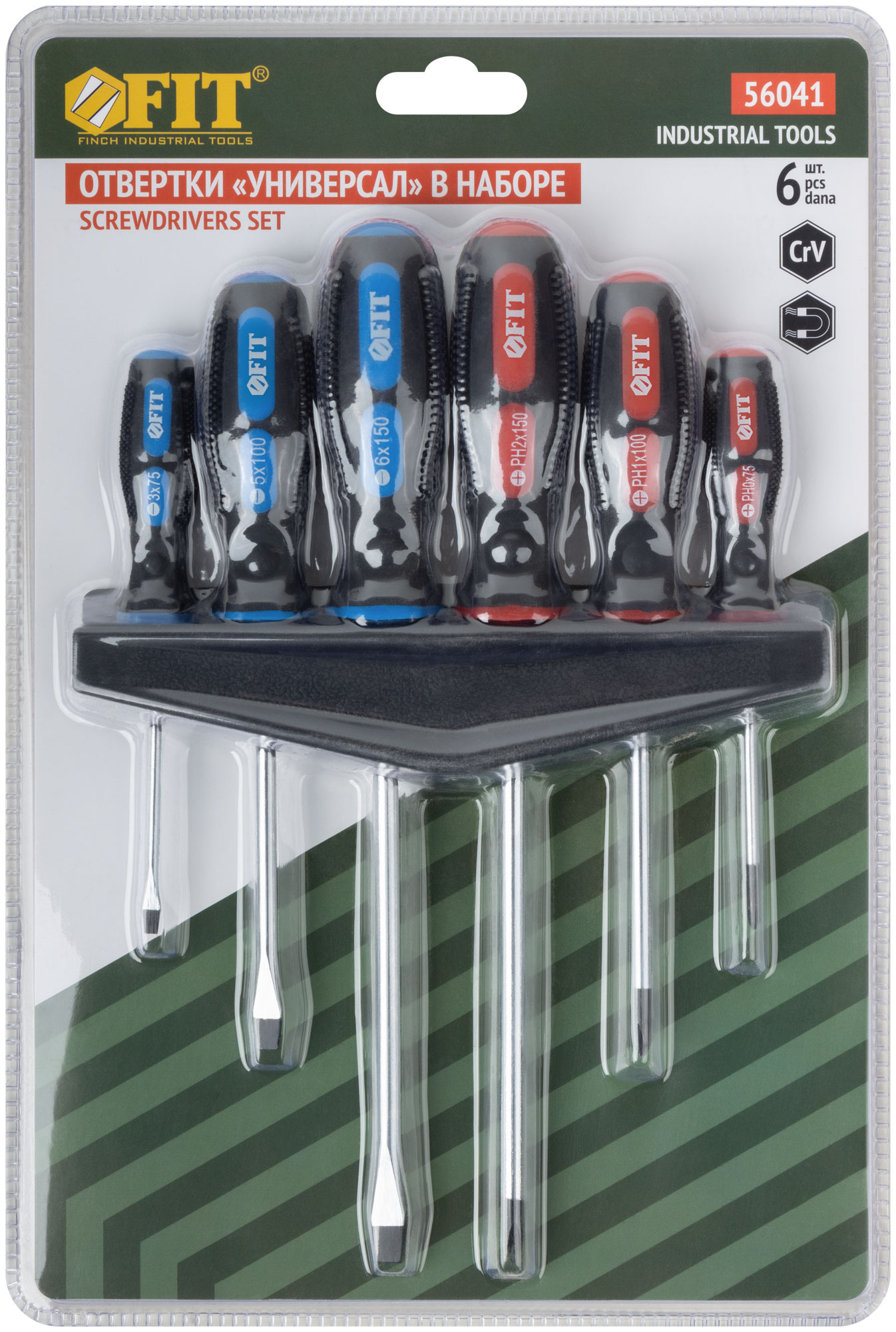 Отвертки "Универсал", CrV сталь, прорезиненные ручки, на держателе, набор 6 шт.