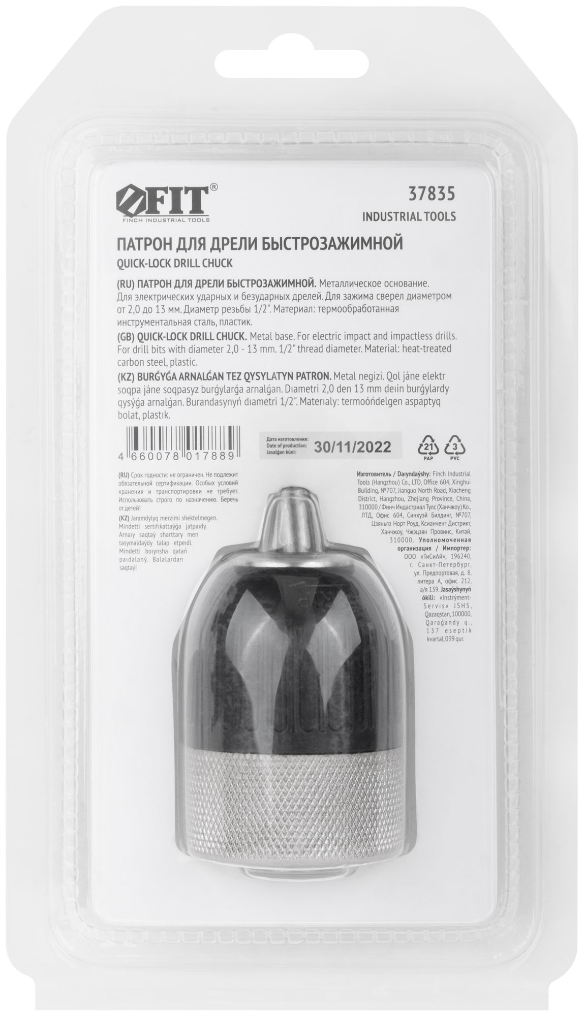 Патрон быстрозажимной 1/2" - 13 мм (металлическое основание)