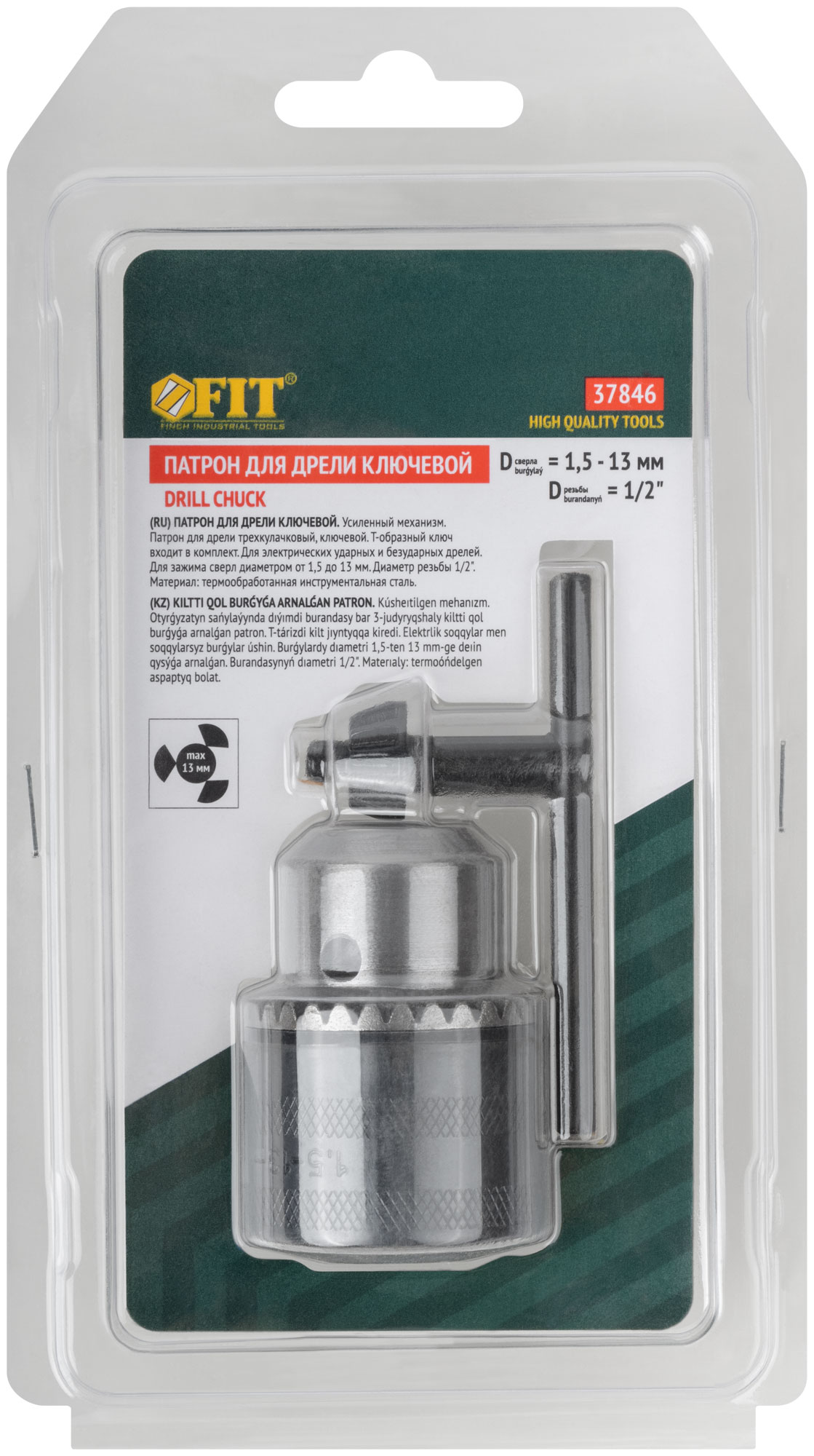 Патрон для дрели ключевой 1/2" - 13 мм (с ключом Т-обр., усиленный)