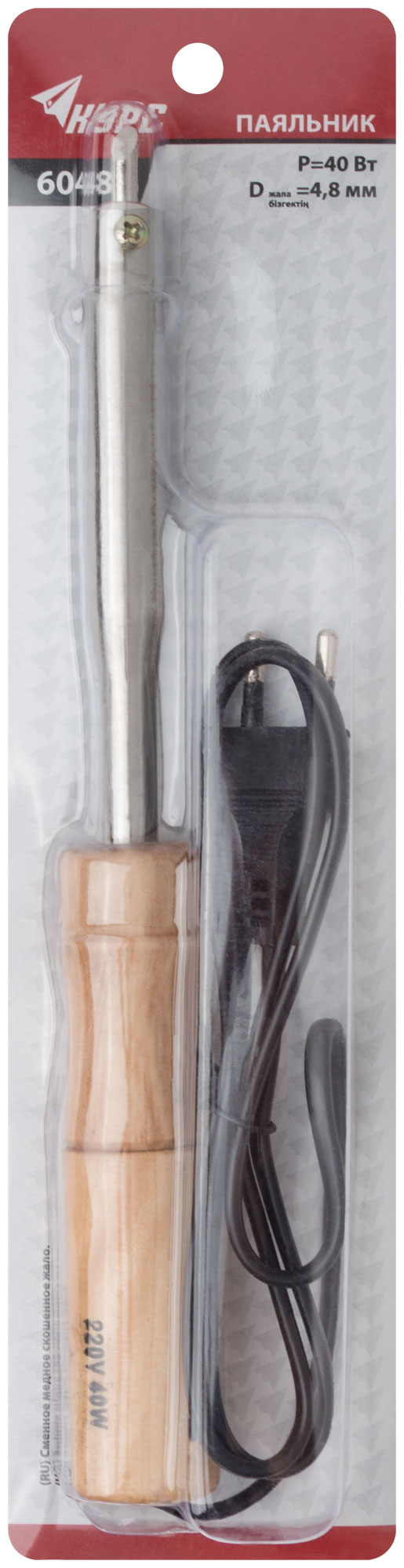 Паяльник 220 В, деревянная ручка, скошенное жало D=4,8 мм, 40 Вт