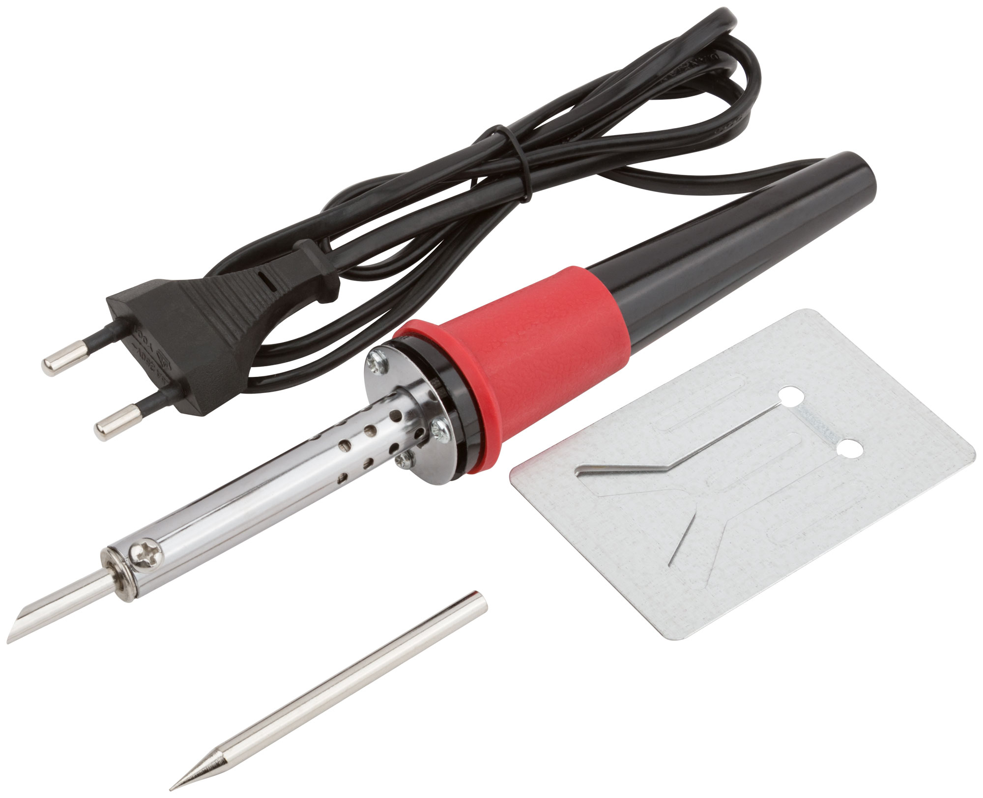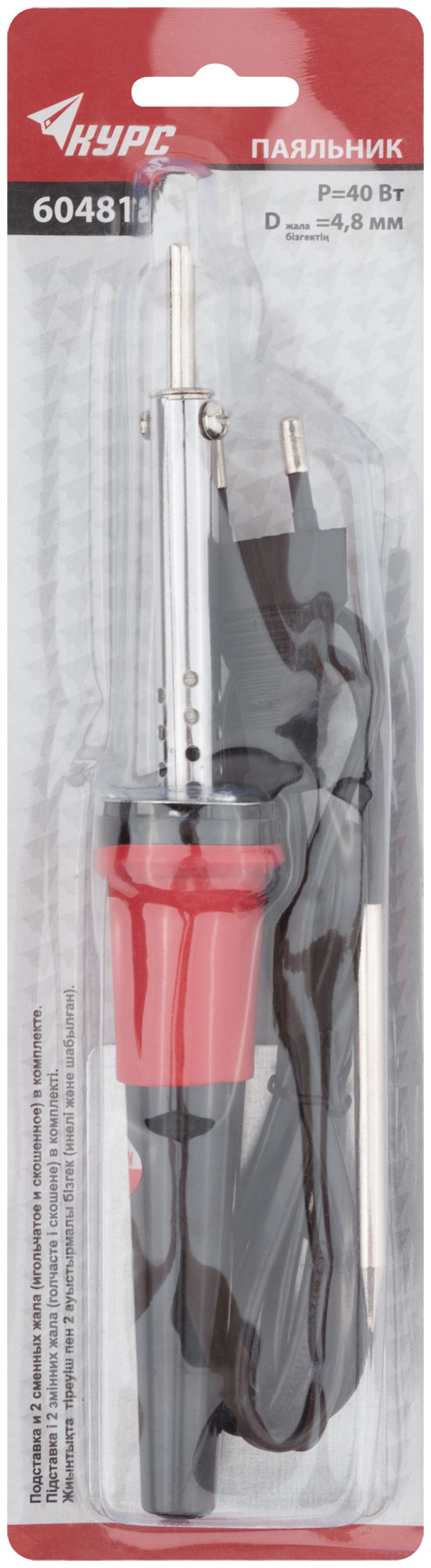 Паяльник 220 В, пластиковая ручка, доп-но подставка для паяльника и два сменных жала, D=4,8 мм, 40 Вт