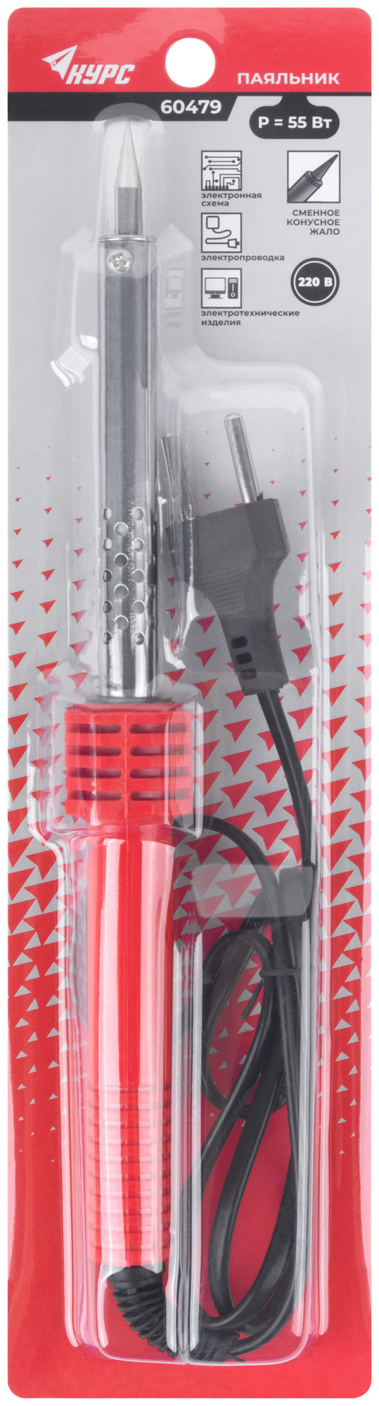 Паяльник 220 В, пластиковая ручка, конусное латунное жало, 55 Вт