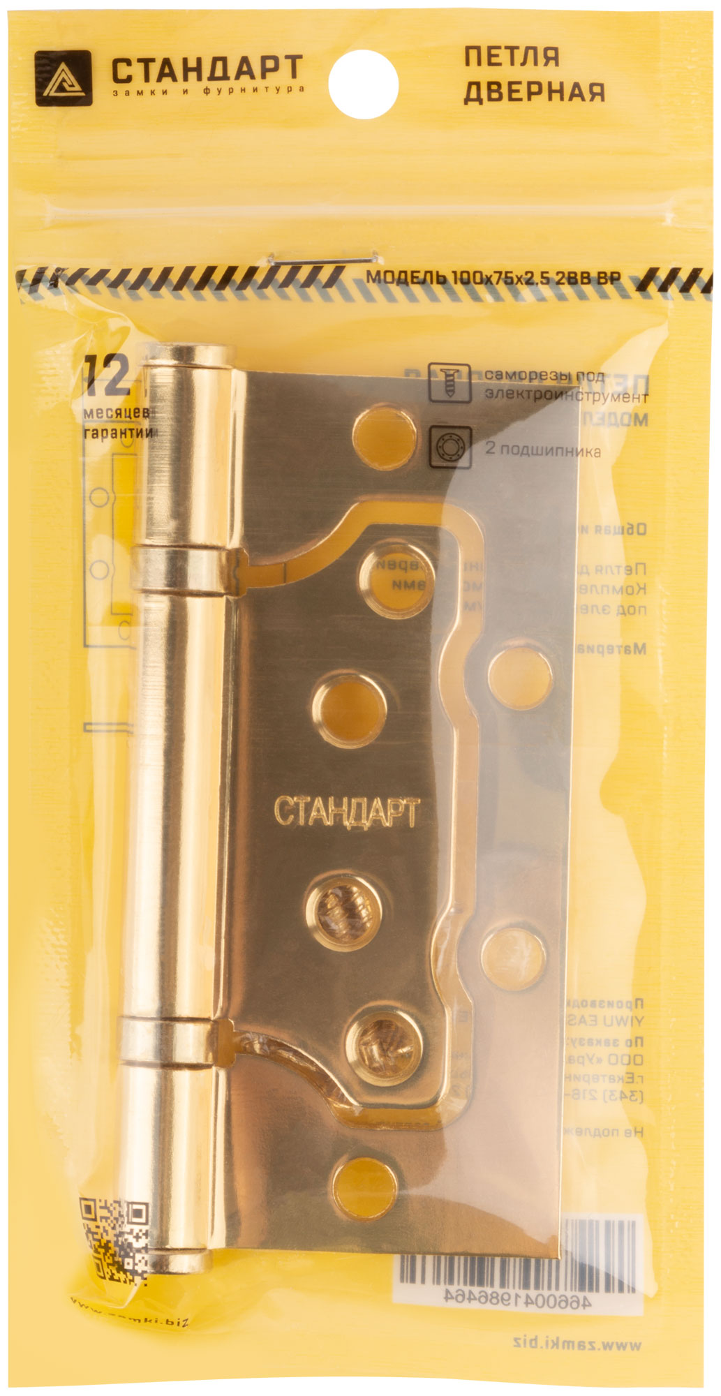 Петля дверная универсальная (без врезки) "Стандарт" 100х75х2,5 мм латунь (2ВВ - ВР)