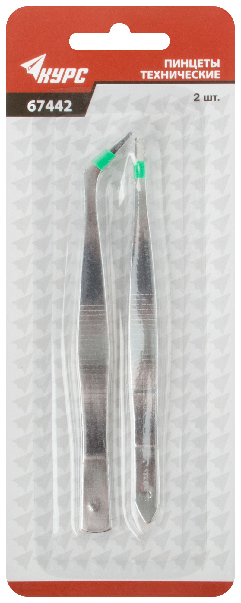 Набор "Пинцет прямой. Пинцет с захватом под углом 45" Материал: инструментальная сталь. Упаковка : блистер.