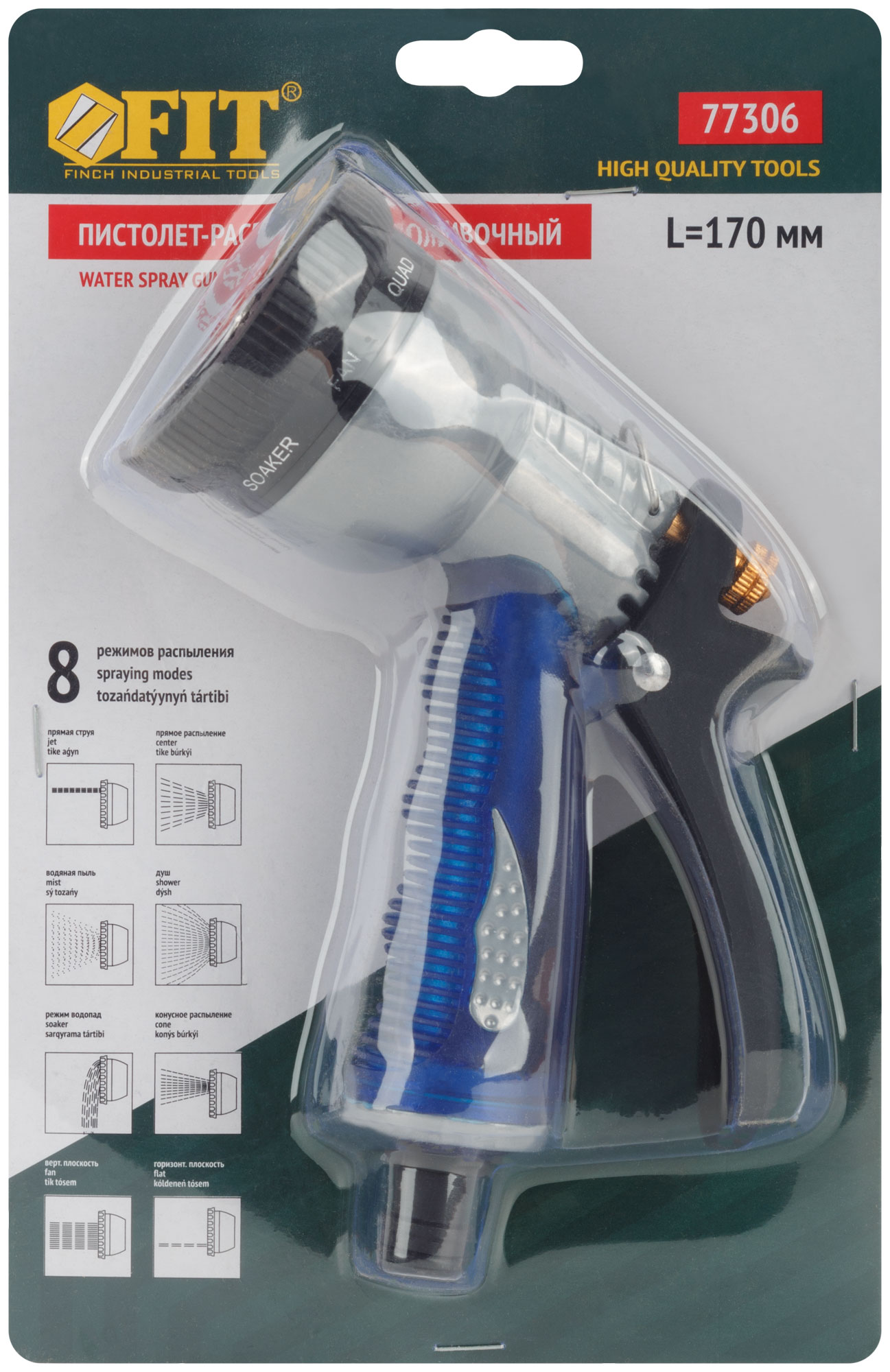 Пистолет для полива, 8 режимов, синий Профи 170 мм