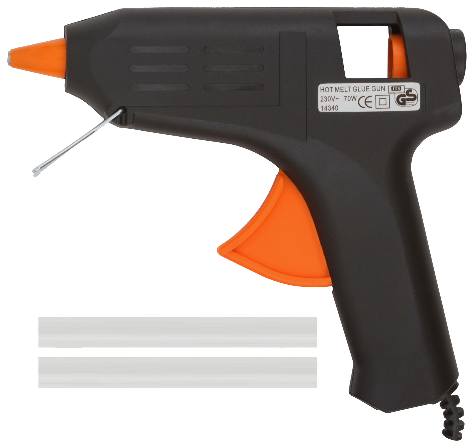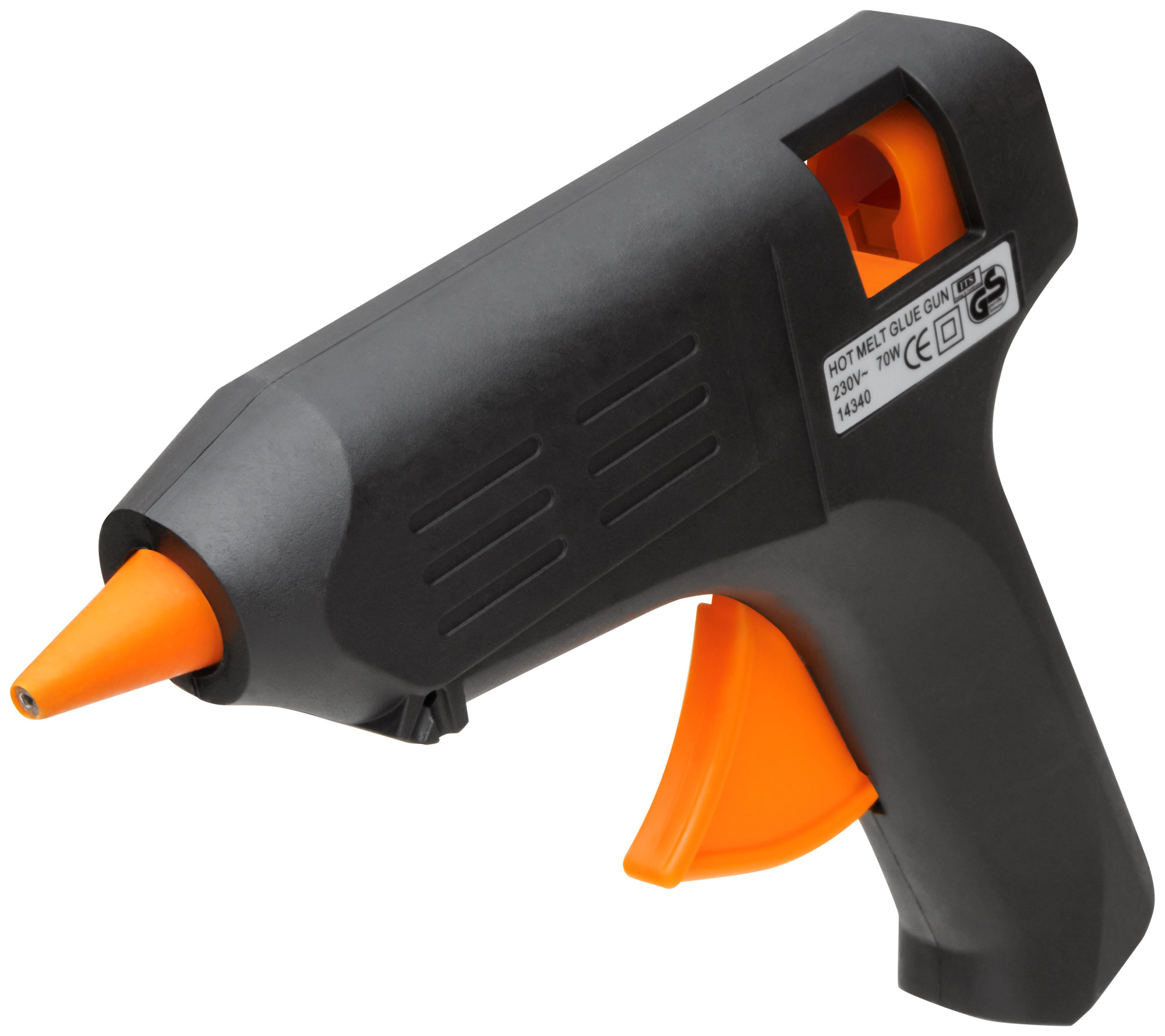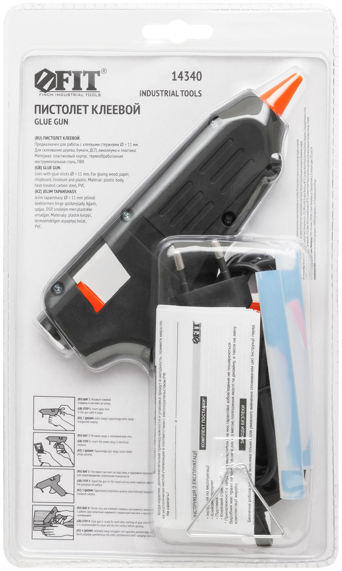 220 В. Для склеивания дерева, бумаги, ДСП, линолеума и пластика. Используется с клеевым стержнем. Противокапельная система. Материал: пластиковый корпус, инструментальная сталь, ПВХ. Упаковка: блистер.