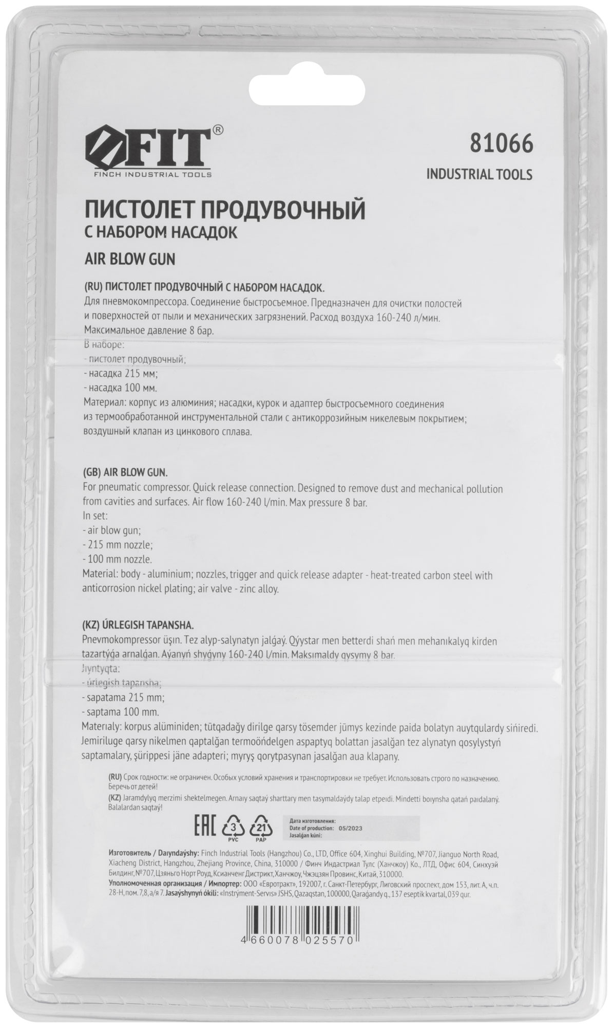 Для пневмокомпрессора. Cоединение быстросъемное. Используется для очистки полостей и поверхностей от пыли и механических загрязнений. КОМПЛЕКТАЦИЯ: пистолет продувочный, насадка 215 мм, насадка 100 мм. Материал: алюминий, латунь.