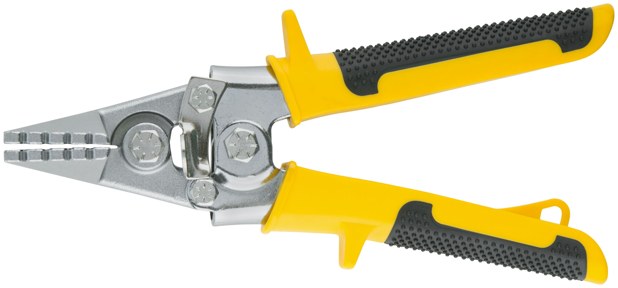 Для работы с листовым металлом (холоднокатаная сталь, медь, алюминий) толщиной до 0,8 мм. Основные области применения - кровельныеработы, монтаж вентиляционных систем. Материал: губки и корпус из инструментальной стали, пластиковые прорезиненные ручки. Упаковка: блистер.