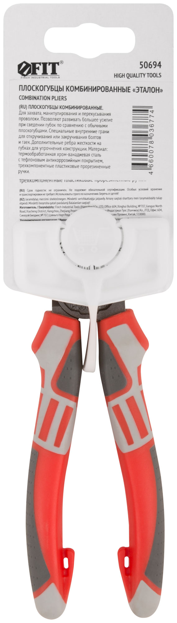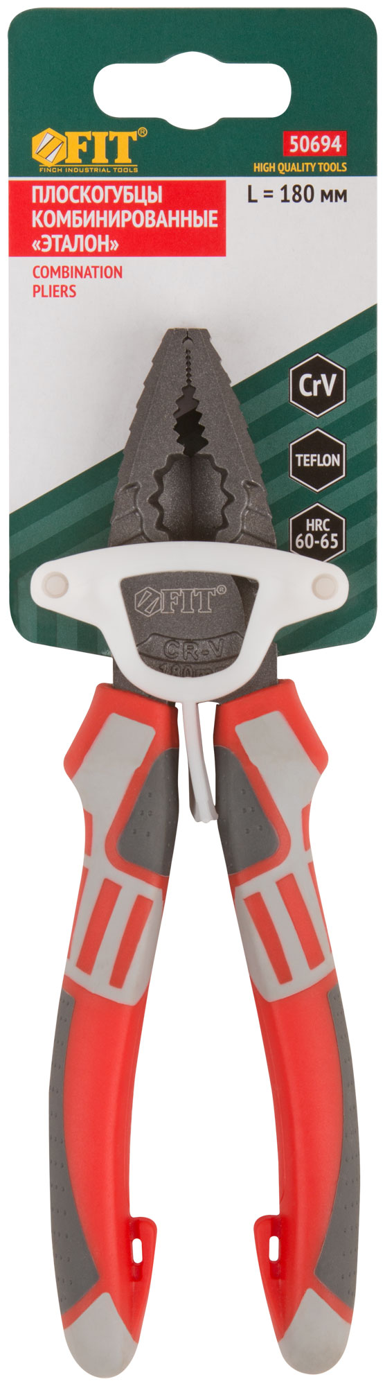 Плоскогубцы комбинированные "Эталон", CrV сталь, ребра жесткости на губках, тефлоновое покрытие, 3К прорезиненные ручки 180 мм