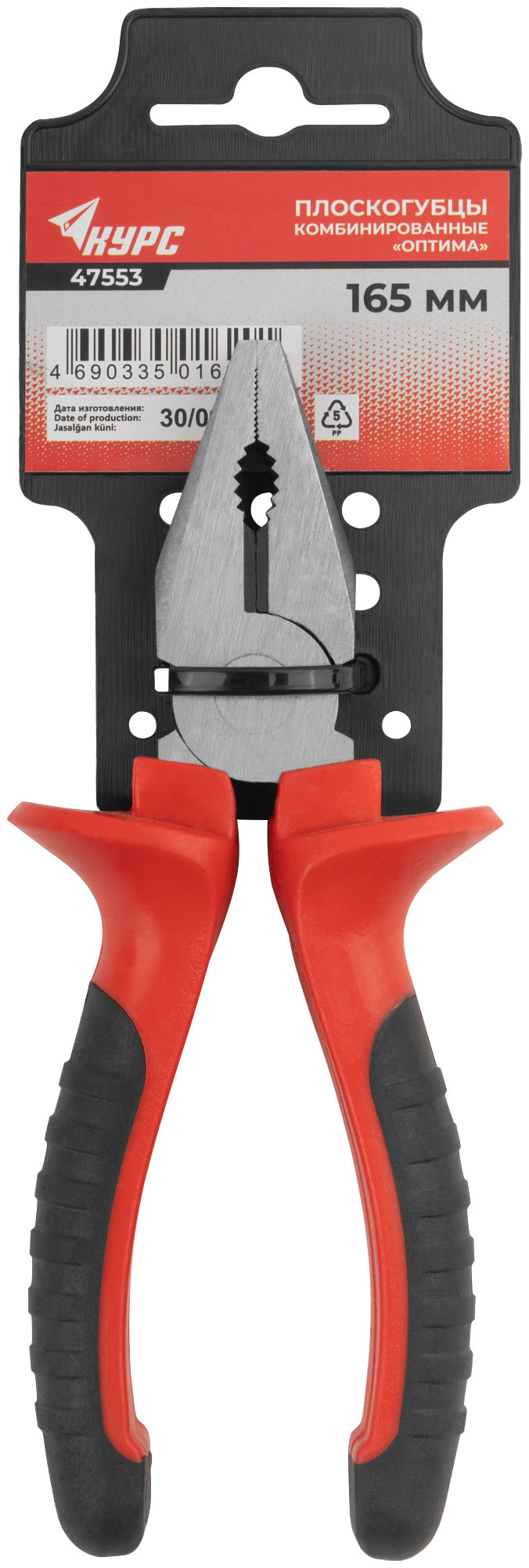 Плоскогубцы комбинированные "Оптима", двухцветные обрезиненные ручки, полированная сталь 165 мм