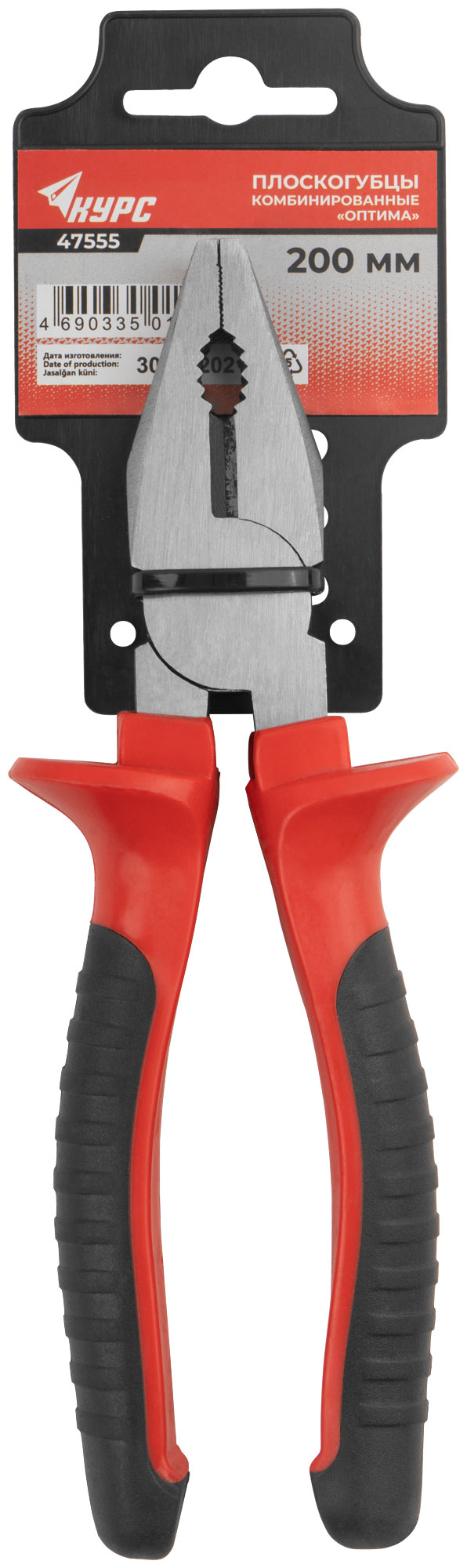 Плоскогубцы комбинированные "Оптима", двухцветные обрезиненные ручки, полированная сталь 200 мм