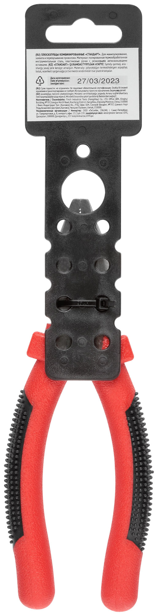 Плоскогубцы комбинированные "Стандарт" красно-черные пластиковые ручки, полированная сталь 165 мм