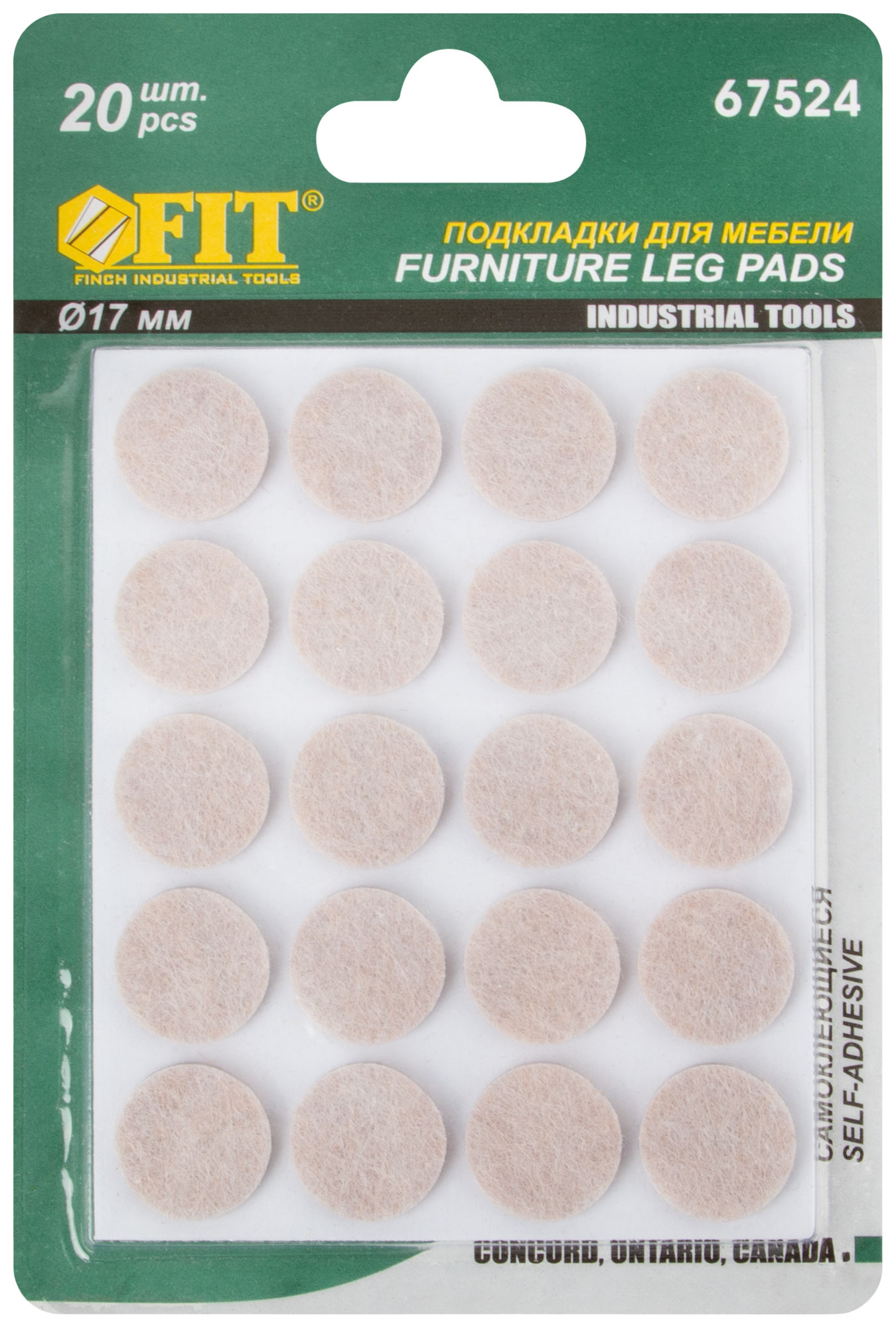 Подкладки для мебели самоклеющиеся круглые 17 мм, 20 шт., войлок