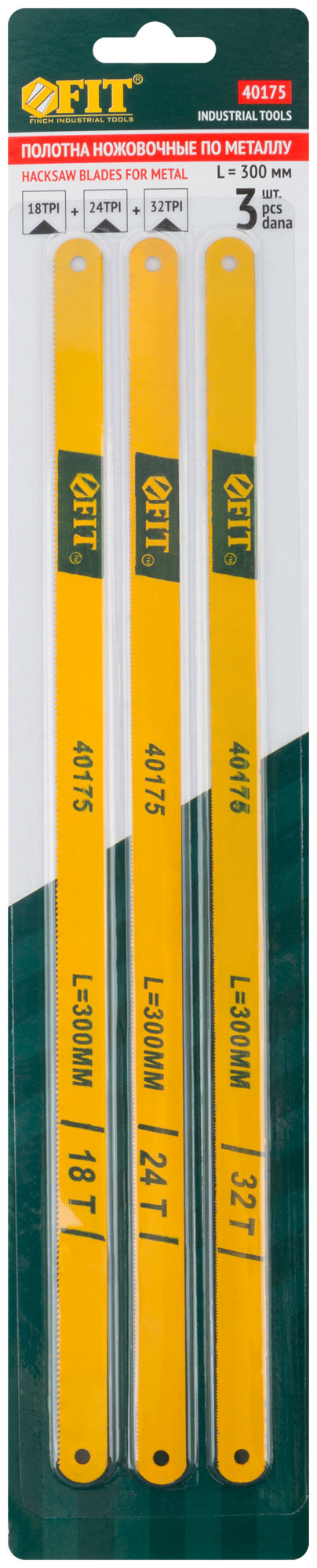 Полотна ножовочные по металлу, легированная сталь, 20 Cr, 300 мм, в блистере 3 шт. (18ТPI+24ТPI+32ТPI)