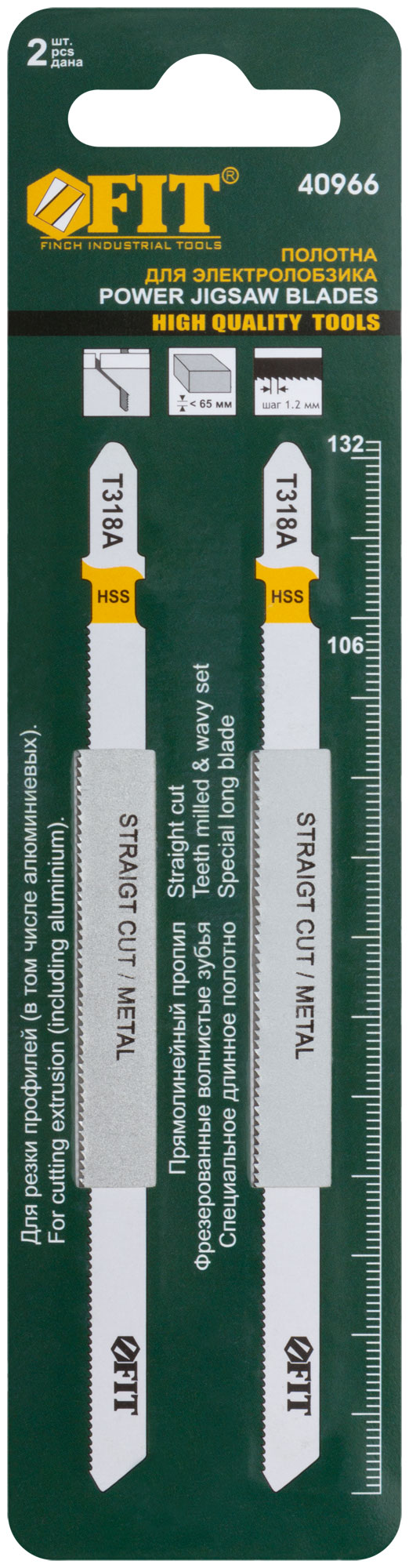 T318A. (Lобщ./раб.=132/106 мм). Зубья: профрезированные, «волна». Пропил: прямой, тонкий. Длинное полотно. Для резки профилей (в том числе алюминиевых). Толщина реза <65 мм. Материал: быстрорежущая HSS сталь. Упаковка: картонный конверт.