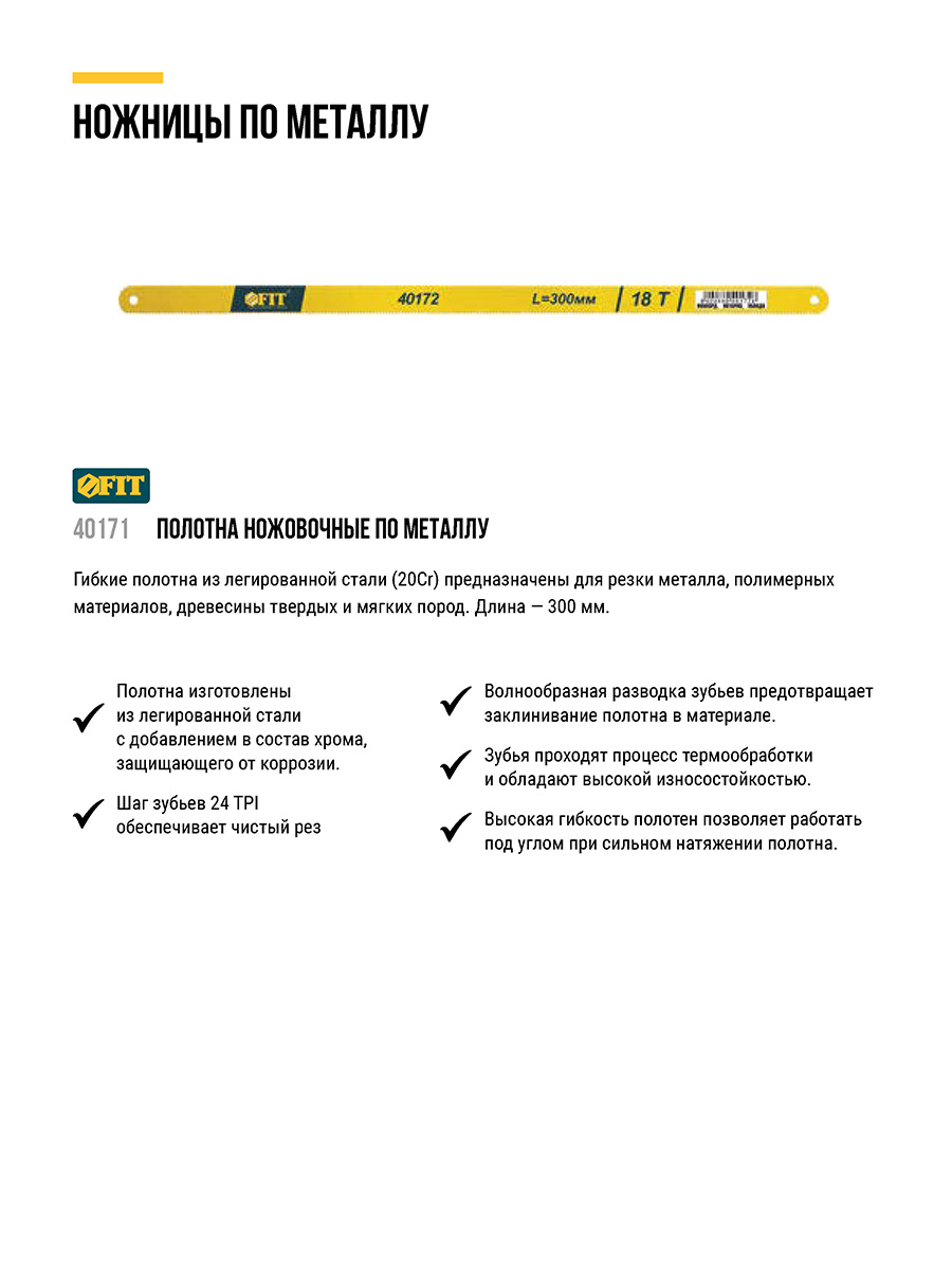 Для ножовки по металлу. Гибкое, калёный зуб. Материал: легированная 20 Cr сталь.