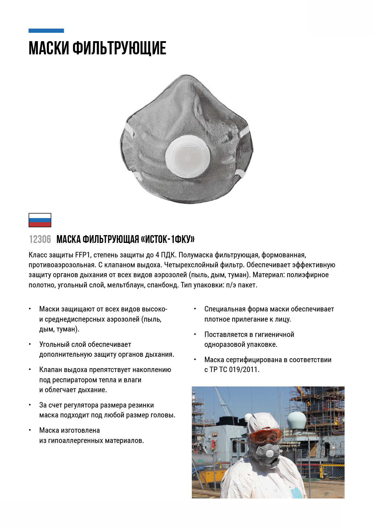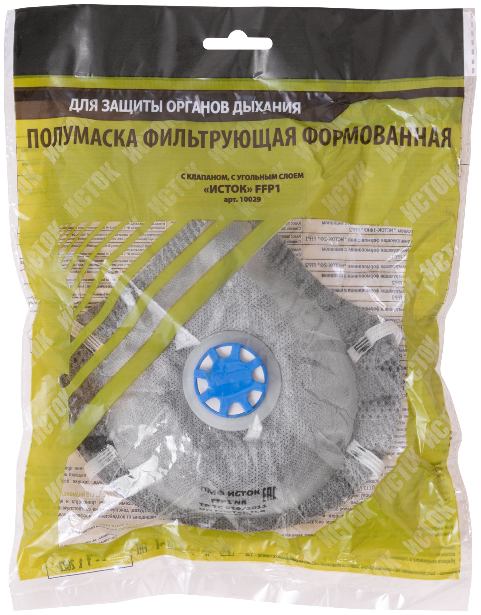«ИСТОК». Полумаска фильтрующая, формованая, противоаэрозольная. С клапаном выдоха. Четырехслойный фильтр. Обеспечивает эффективную защиту органов дыхания от всех видов аэрозолей (пыль, дым, туман). Клапан выдоха препятствует накоплению под респиратором тепла и влаги, облегчает дыхание. Материал: полиэфирное полотно, угольный слой, мельтблаун, спанбонд. Упаковка: п/э пакет.