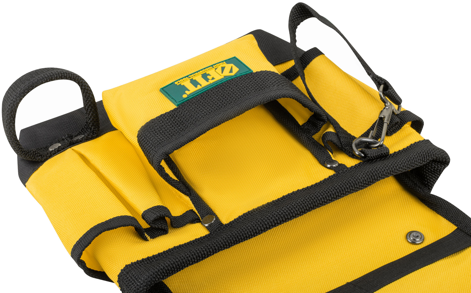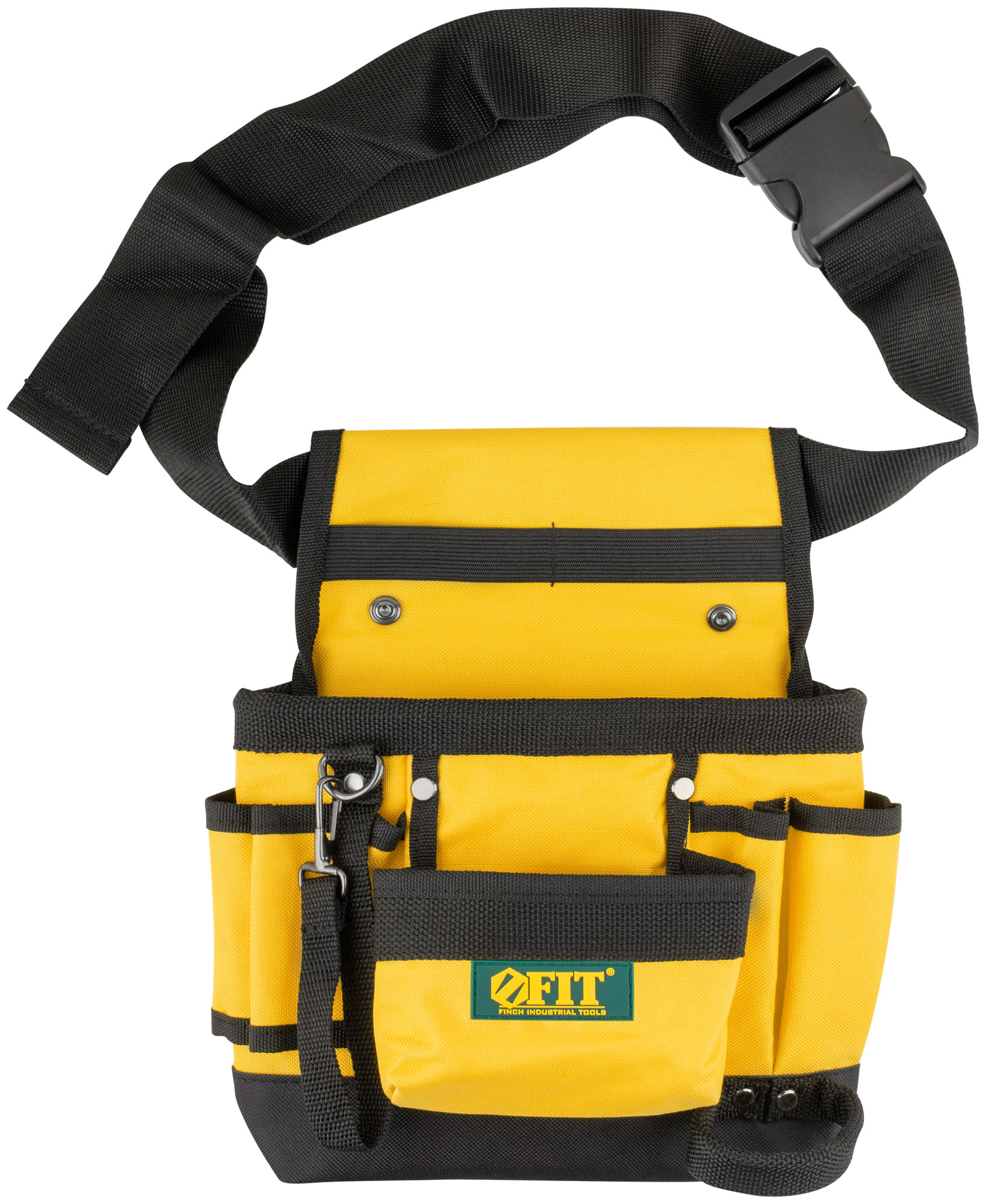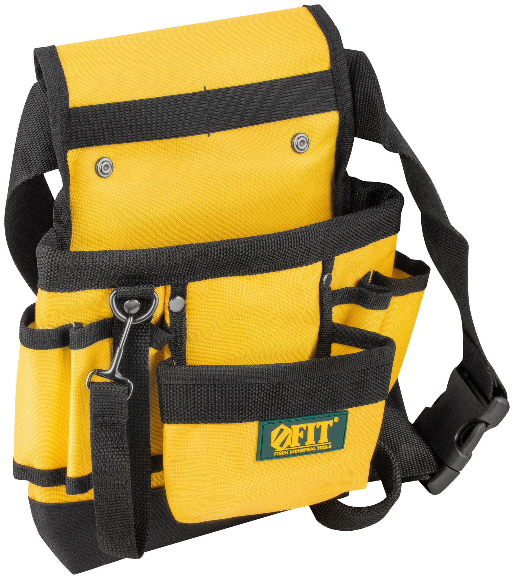 9 отделений, 1 петля для инструмента, 1 петля для клейкой ленты. Для переноски инструмента и крепежа во время проведения монтажных, слесарных, кровельных и других видов работ. Материал: полиэстер, пластик, инструментальная сталь. Упаковка: П/Э пакет с картонным подвесом.