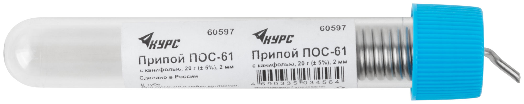 Припой ПОС 61 с канифолью, проволока диаметр 2 мм, в тубе, 20 гр.