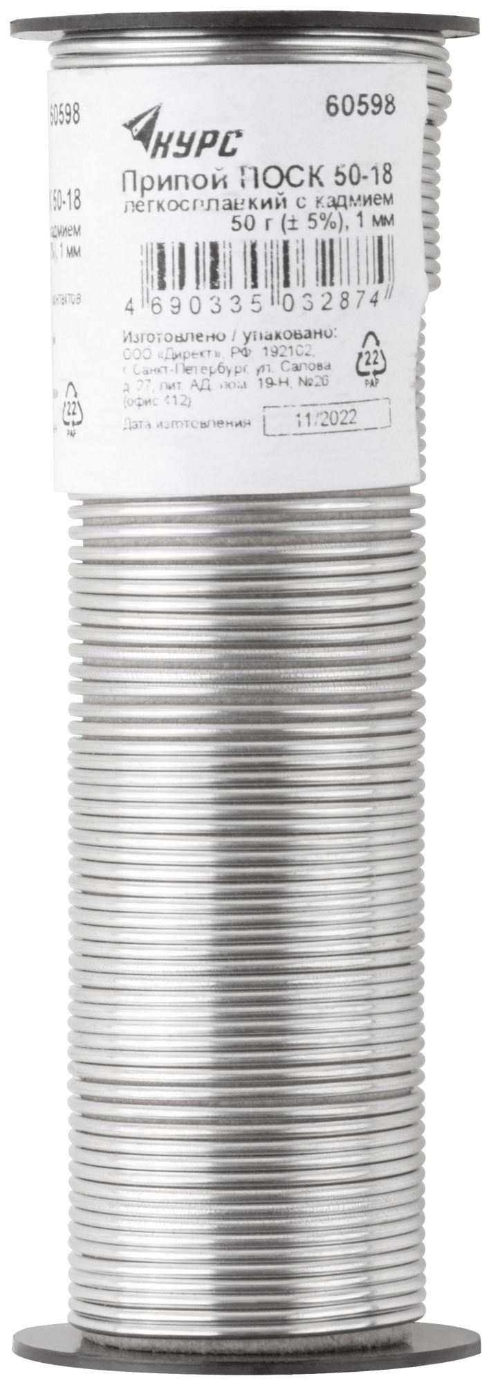 Припой ПОСК 50-18 легкосплавкий с кадмием, проволока диаметр 1 мм, на катушке, 50 гр.