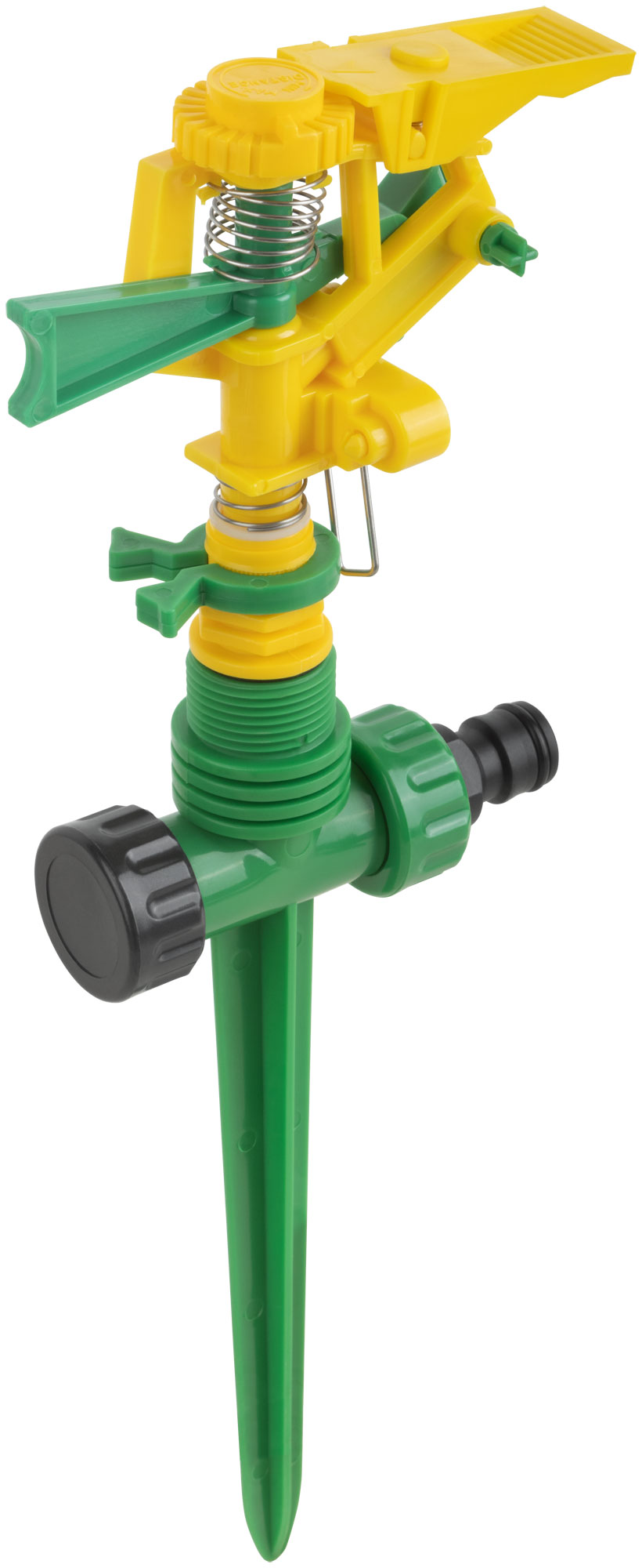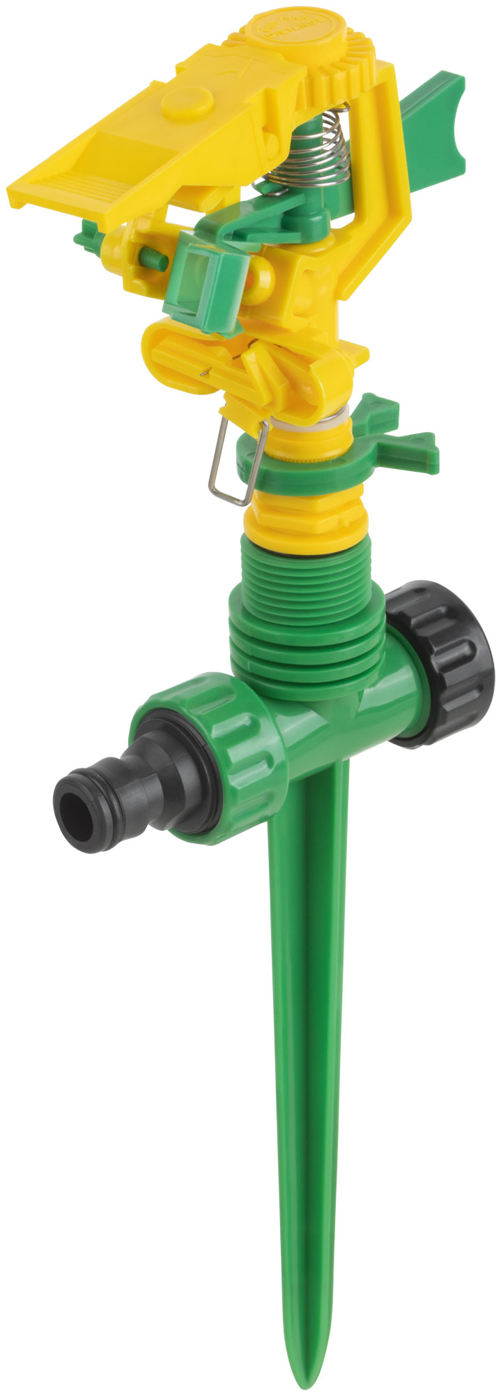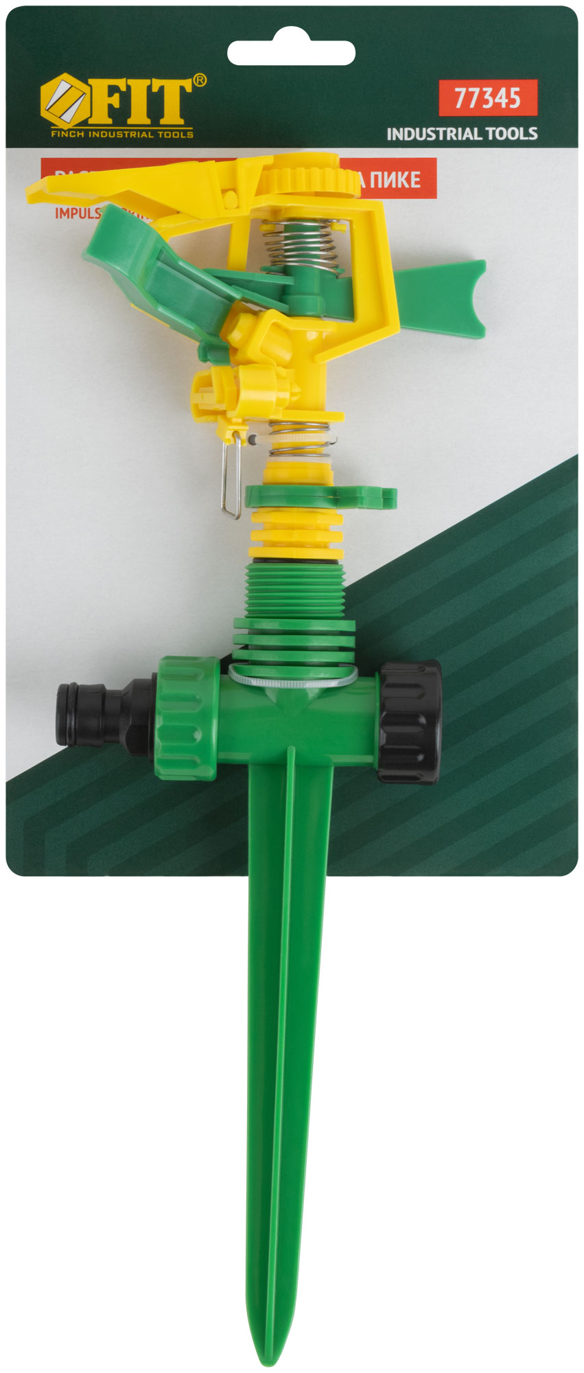 Импульсный, пластиковый. На пике. Присоединяется к шлангу при помощи универсального соединителя. Совместим со всеми элементами аналогичнойполивочной системы. Два соединительных гнезда обеспечивают его использование в цепи из нескольких распылителей. Регулировка поворотаголовки от 0° до 360° позволяет орошать заданный участок. Радиус разбрызгивания – 178метров. Материал: пластик. Упаковка:8картонный подвес.