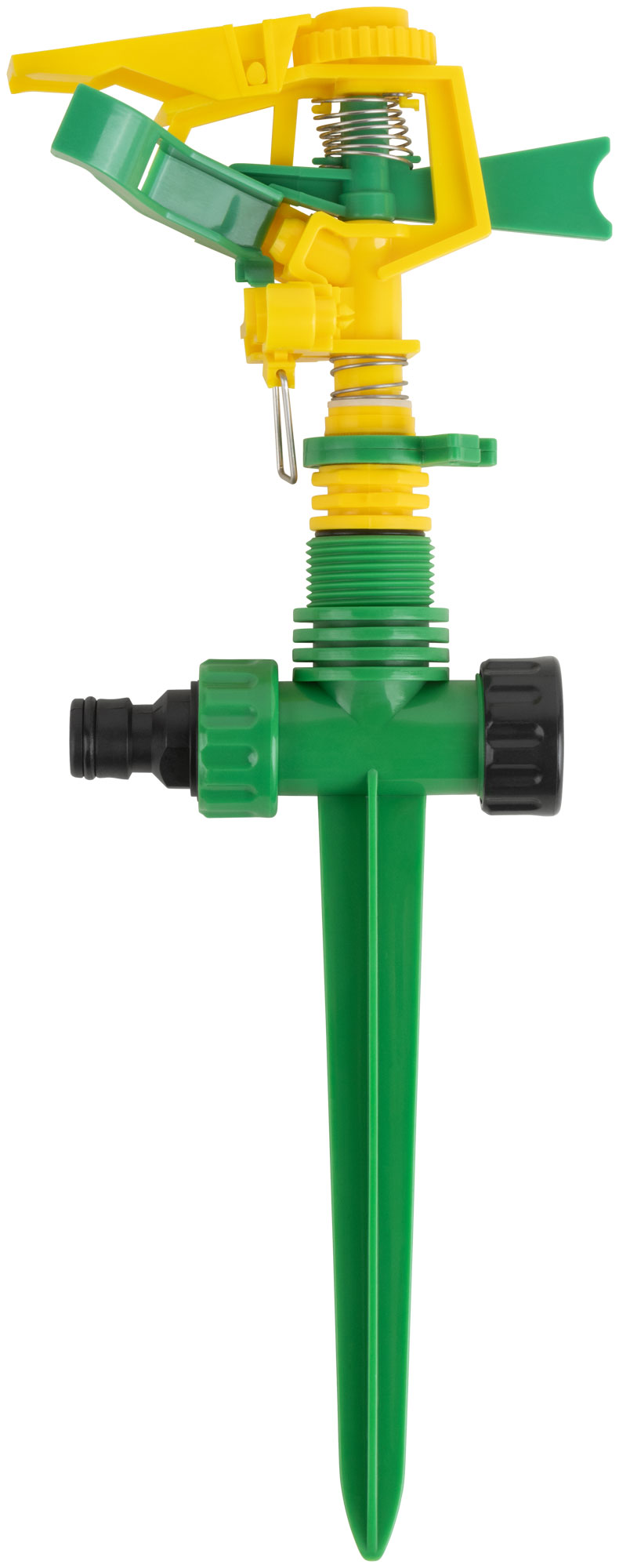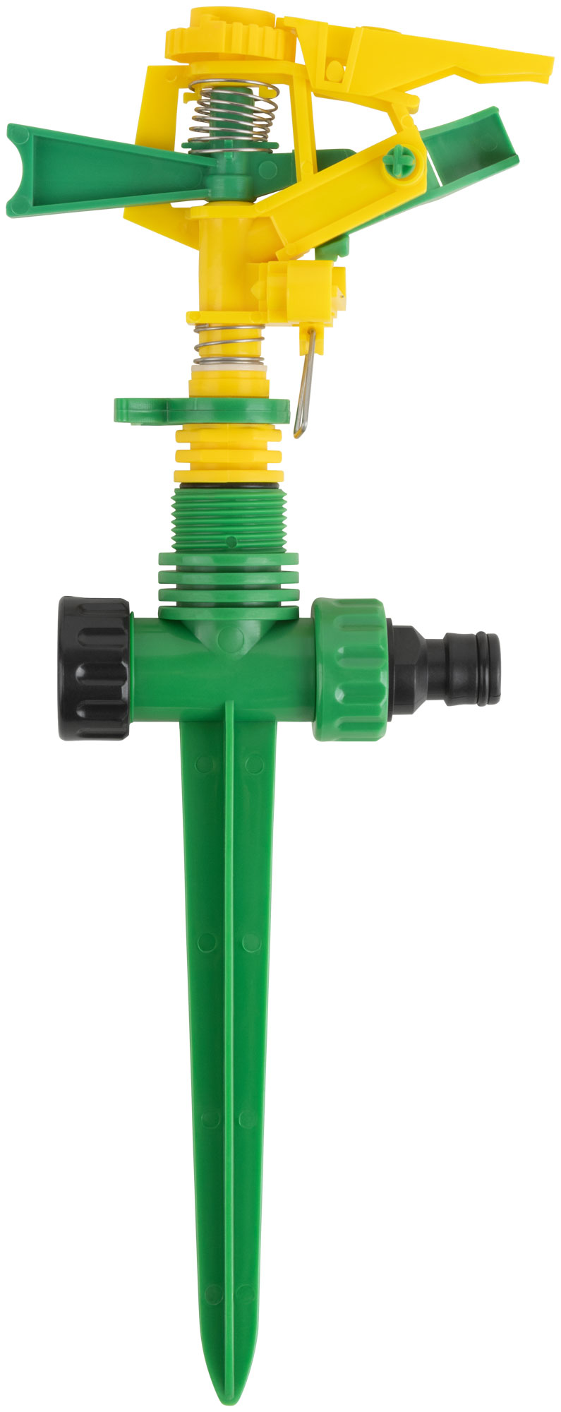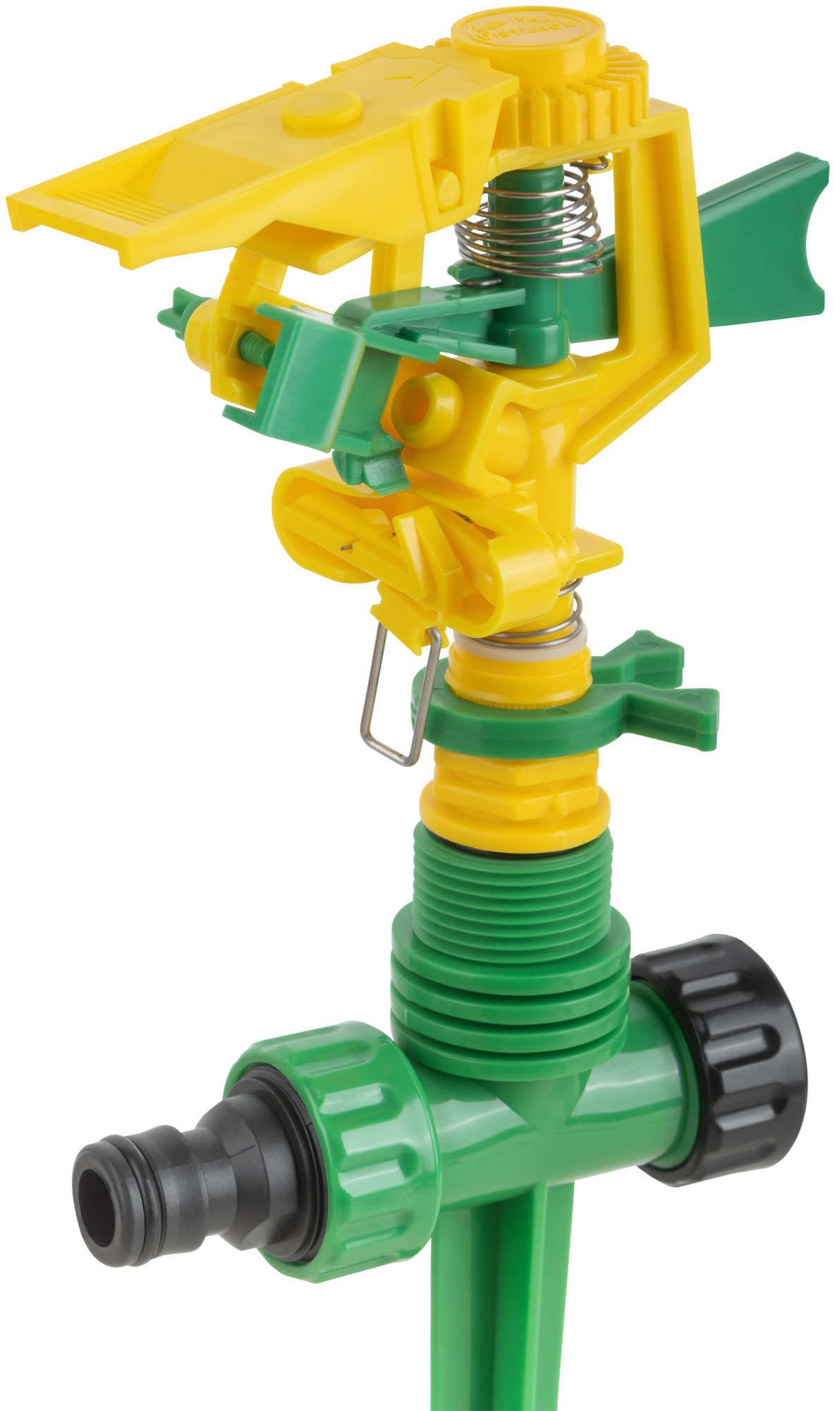 Импульсный, пластиковый. На пике. Присоединяется к шлангу при помощи универсального соединителя. Совместим со всеми элементами аналогичнойполивочной системы. Два соединительных гнезда обеспечивают его использование в цепи из нескольких распылителей. Регулировка поворотаголовки от 0° до 360° позволяет орошать заданный участок. Радиус разбрызгивания – 178метров. Материал: пластик. Упаковка:8картонный подвес.