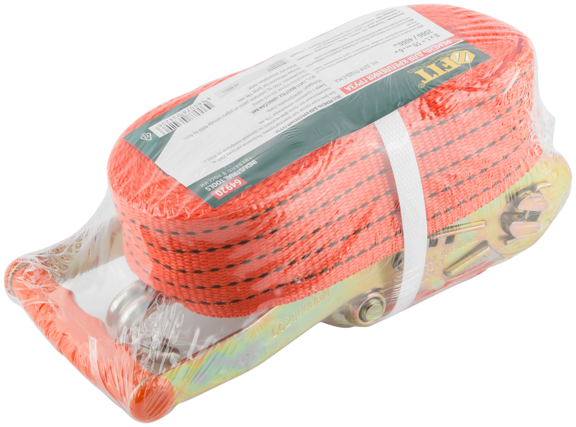 Ремень для крепления груза, храповый механизм 196 мм, лента 50 мм x 6 м, 2000 / 4000 кг