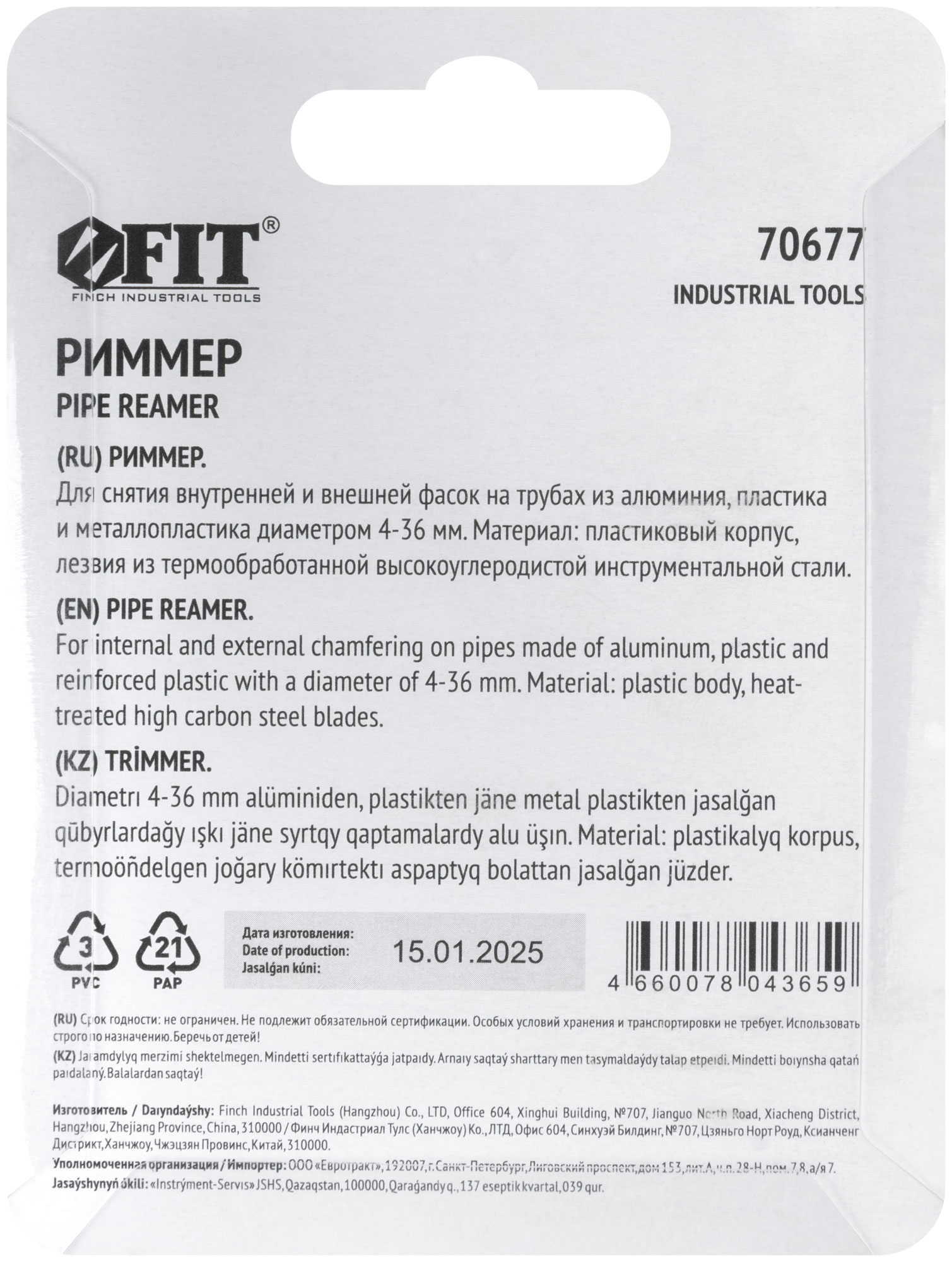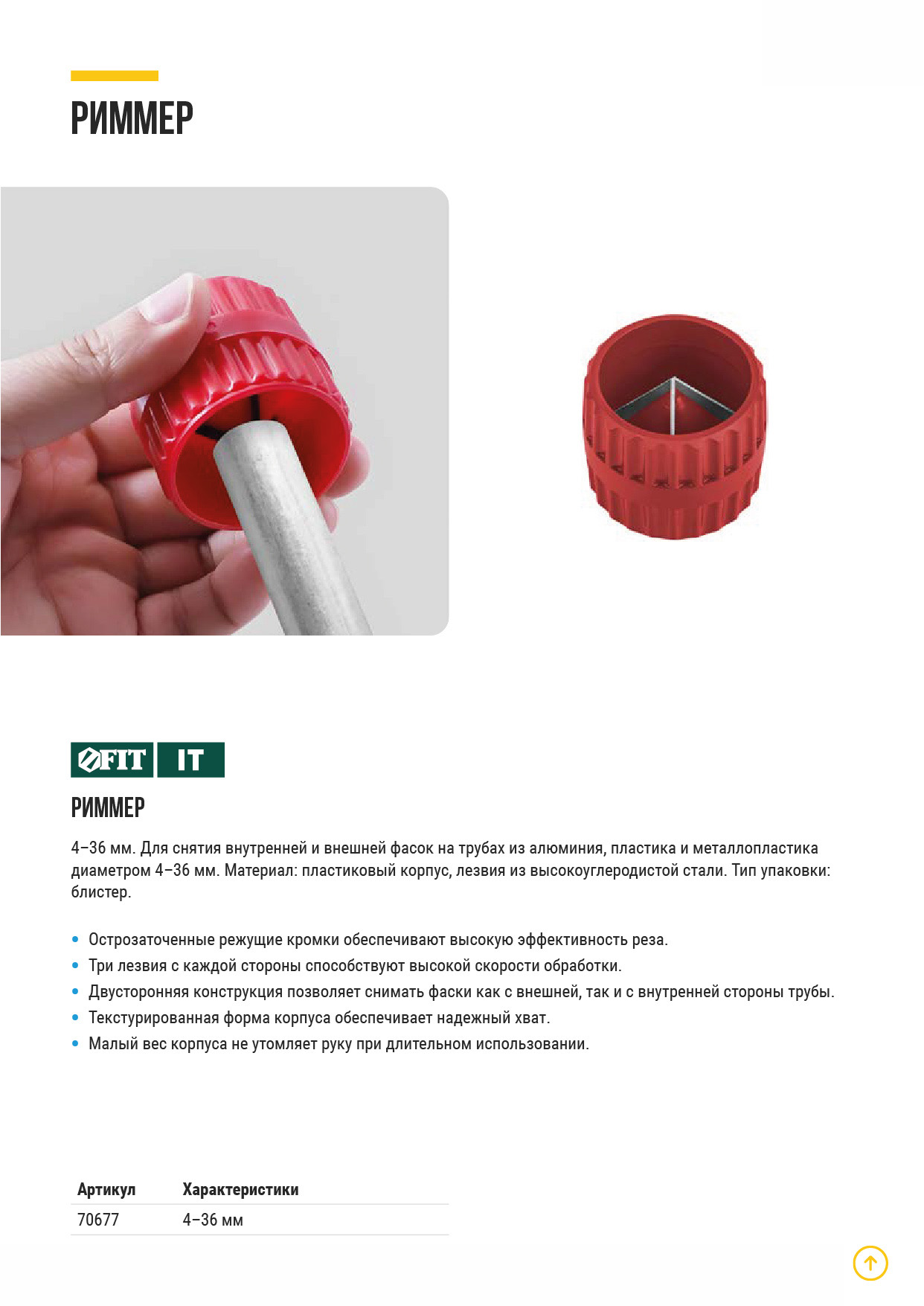 Для снятия внутренней и внешней фасок на трубах из алюминия, пластика и металлопластика диаметром 4-36 мм. Материал: пластиковый корпус, лезвияиз высокоуглеродистой стали. Упаковка: блистер.