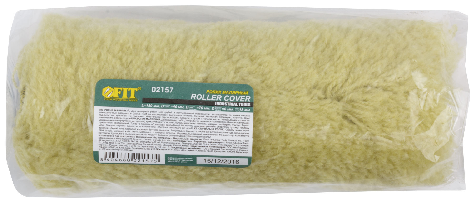 Ролик полиакриловый нитяной, диаметр 40/76 мм, ворс 18 мм, бюгель 6 мм, зеленый, 150 мм