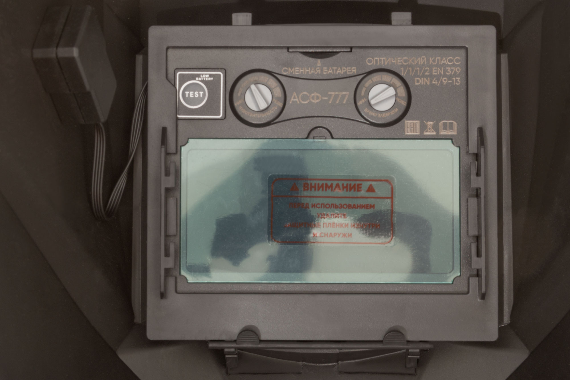 «Хамелеон». Для защиты глаз и лица от вредного воздействия излучения сварочной дуги во время проведения сварочных работ. Оголовье с храповым механизмом и регулировками по 3 направлениям. Светофильтр с автоматическим затемнением (в режиме ожидания DIN 4). 12247 - светофильтр с плавной регулировкой степени затемнения в диапазоне DIN 9-13, режимом шлифовки/резки и сменной литиевой батареей (CR 2032). 12248- светофильтр с 3 плавными регулировками (затемнение DIN 9-13, чувствительность, время задержки) и сменной литиевой батареей (CR;2032). Материал: АБС-пластик. Упаковка: картонная коробка.