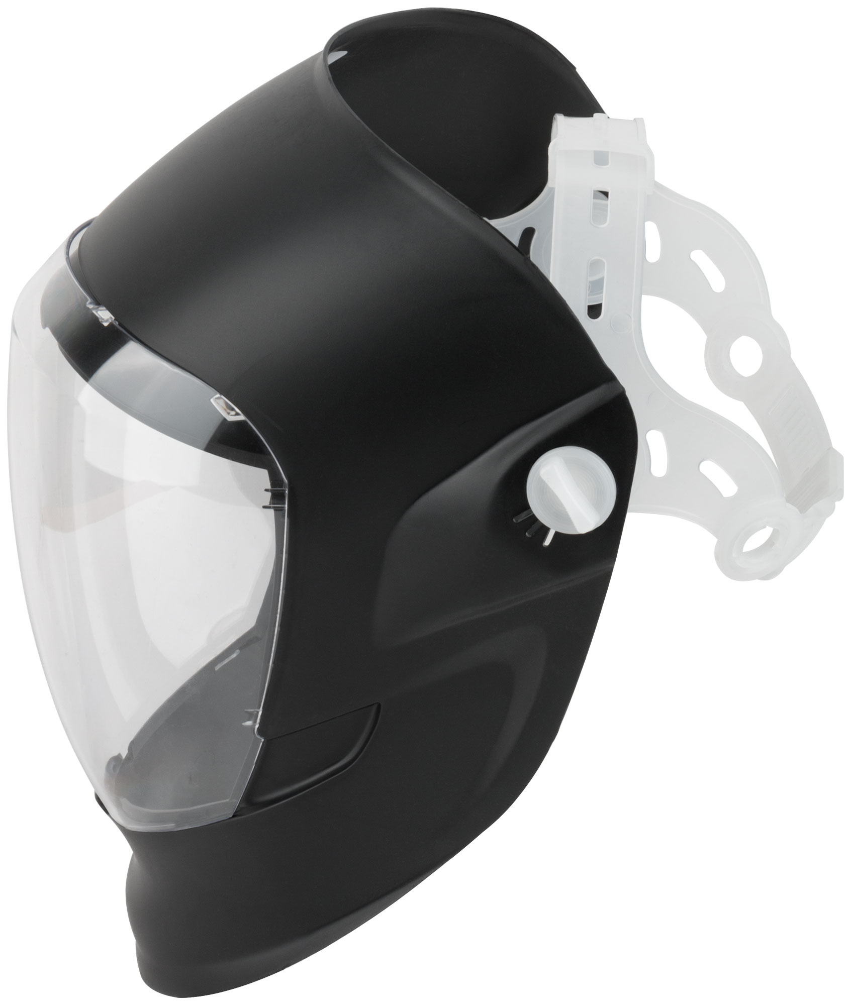 "Щит". Профи. С реечным механизмом регулировки оголовья. Предназначен для индивидуальной защиты глаз и лица работника от высокоскоростных частиц камня, дерева, металла и т.п. при механической обработке поверхностей; брызг не разъедающих жидкостей. Материал: ABS- пластик.