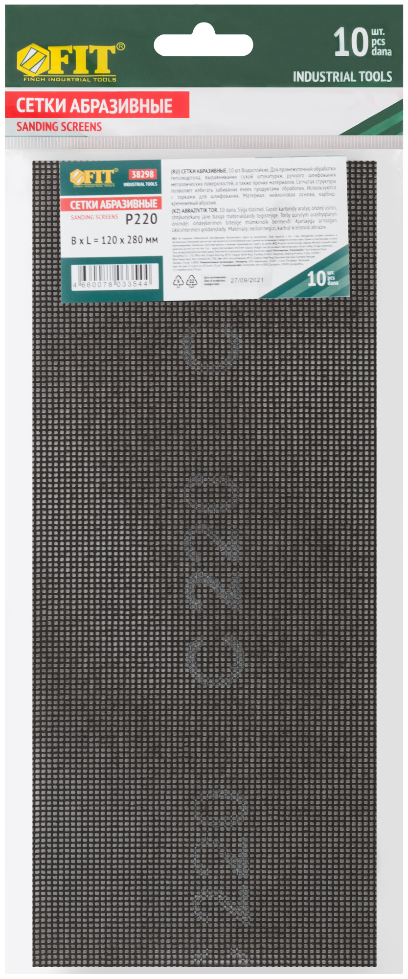 Сетки шлифовальные, нейлоновая основа, 120х280 мм, 10 шт. Р 220