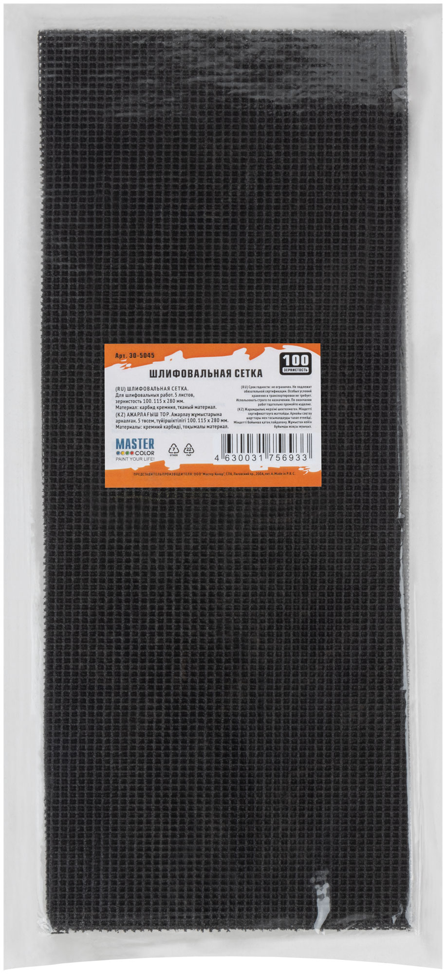 Шлифовальная сетка, 5 листов, зернистость 100, 115*280 мм, карбид кремния