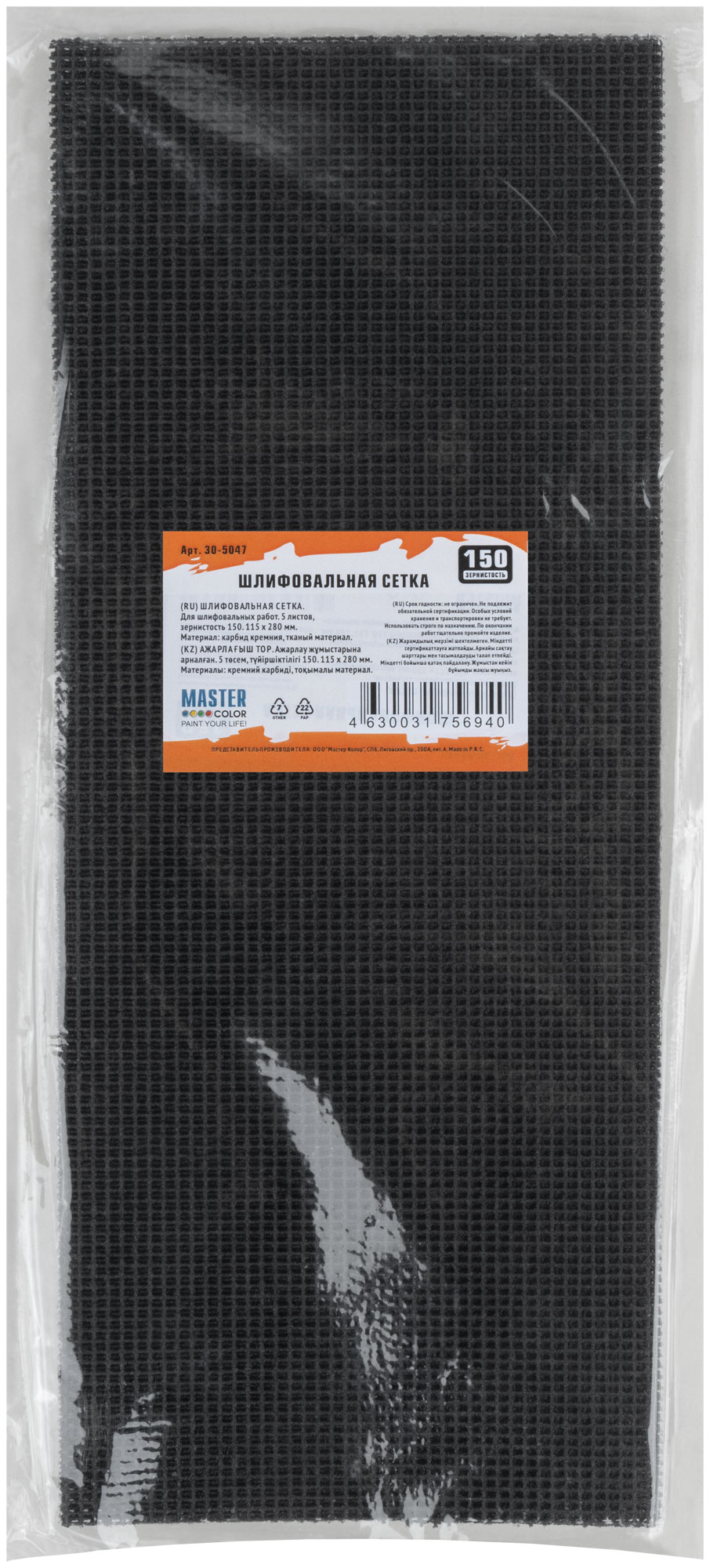 Шлифовальная сетка, 5 листов, зернистость 150, 115*280 мм, карбид кремния