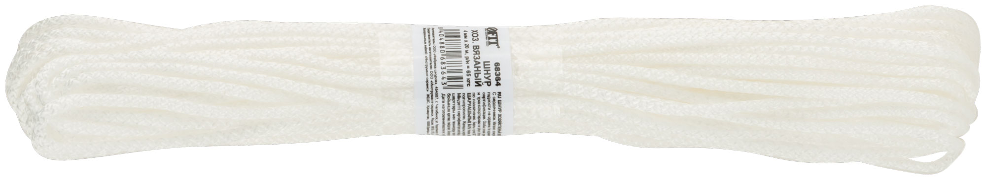 Шнур вязаный полипропиленовый с сердечником 4 мм х 20 м, р/н= 65 кгс