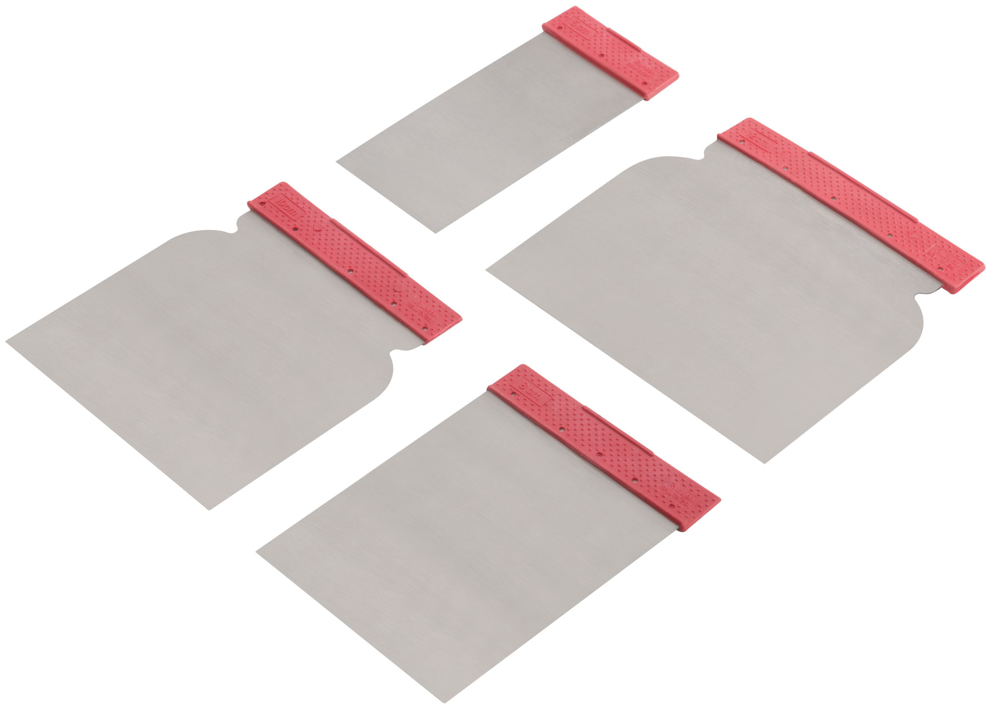 Набор 4 шт. Для нанесения и выравнивания штукатурных растворов, шпатлевания, доводочных работ и работ в труднодоступных местах. Материал: стальное лезвие, пластик. Упаковка: п/э пакет с картонным подвесом.