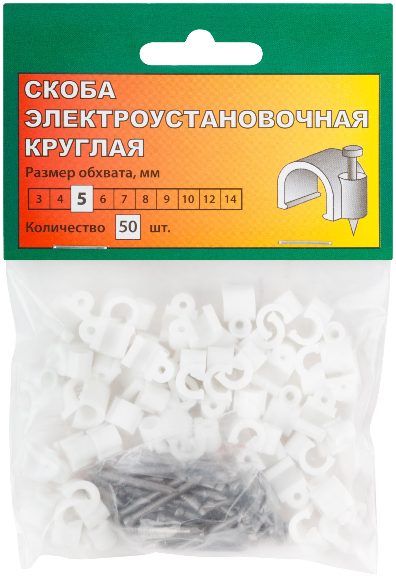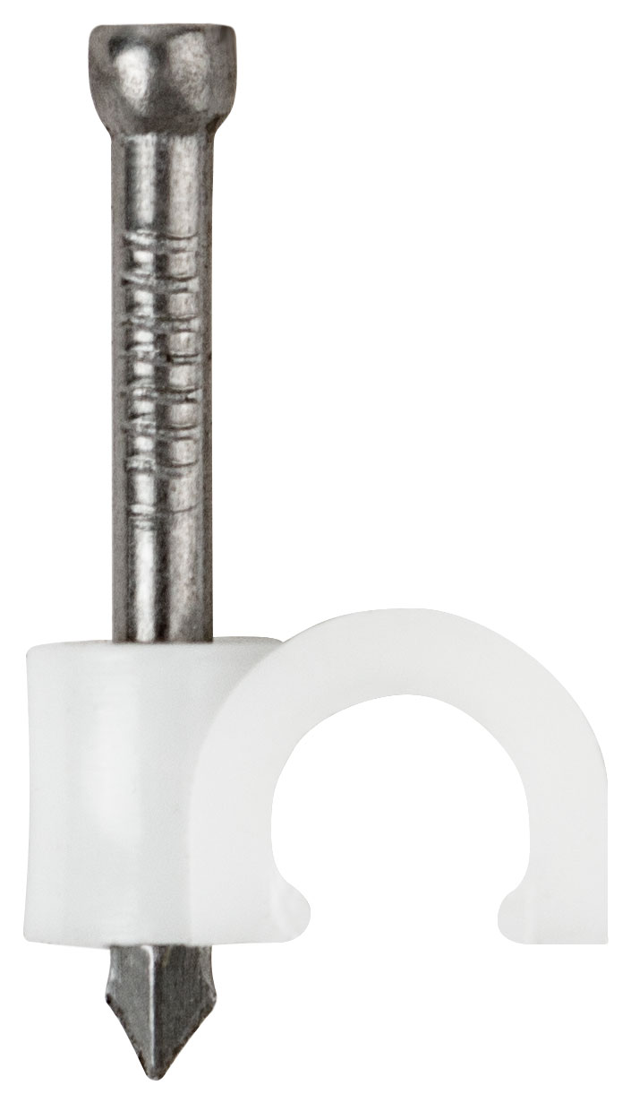 Для крепления кабеля, круглые, с гвоздем. Материал: пластик. Упаковка: п/э пакет с картонным подвесом.
