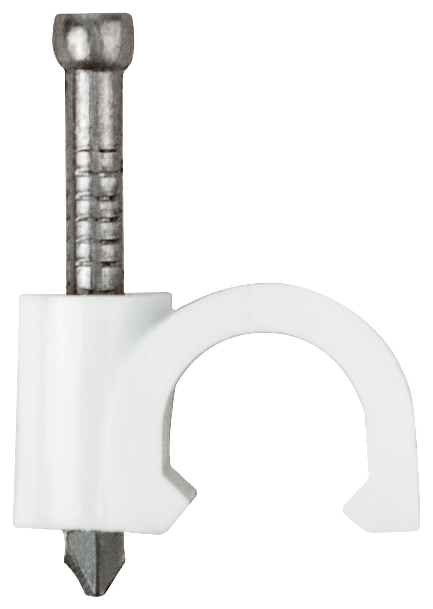 Для крепления кабеля, круглые, с гвоздем. Материал: пластик. Упаковка: п/э пакет с картонным подвесом.