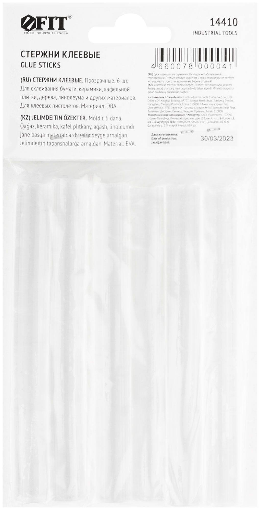 Для клеевых пистолетов. Для склеивания бумаги, керамики, кафельной плитки, дерева, линолеума и других материалов. Материал: этиленвинилацетат. Упаковка: п/э пакет с картонным подвесом (14408-14425), п/э пакет со стикером (14430).
