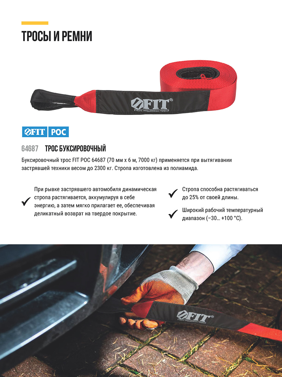 Динамическая стропа для вытягивания застрявшей техники. Растягивается , за счет чего гасится рывковая нагрузка. Вес вытягиваемого автомобиля не должен превышать заявленную на стропе нагрузку поделенную на три. Материал: полиамид. Упаковка: термоусадочная пленка.