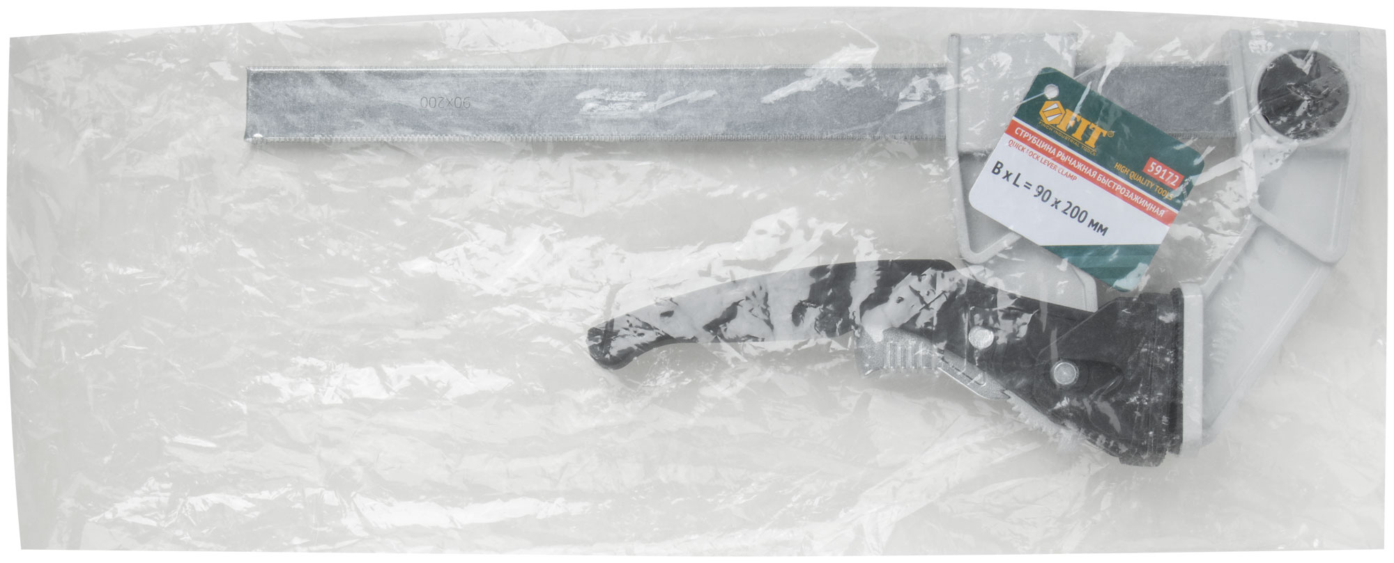 Струбцина рычажная быстрозажимная, усилие сжатия 200 кг, рычажный храповый механизм, металлический корпус, Профи, 90 х 200 мм