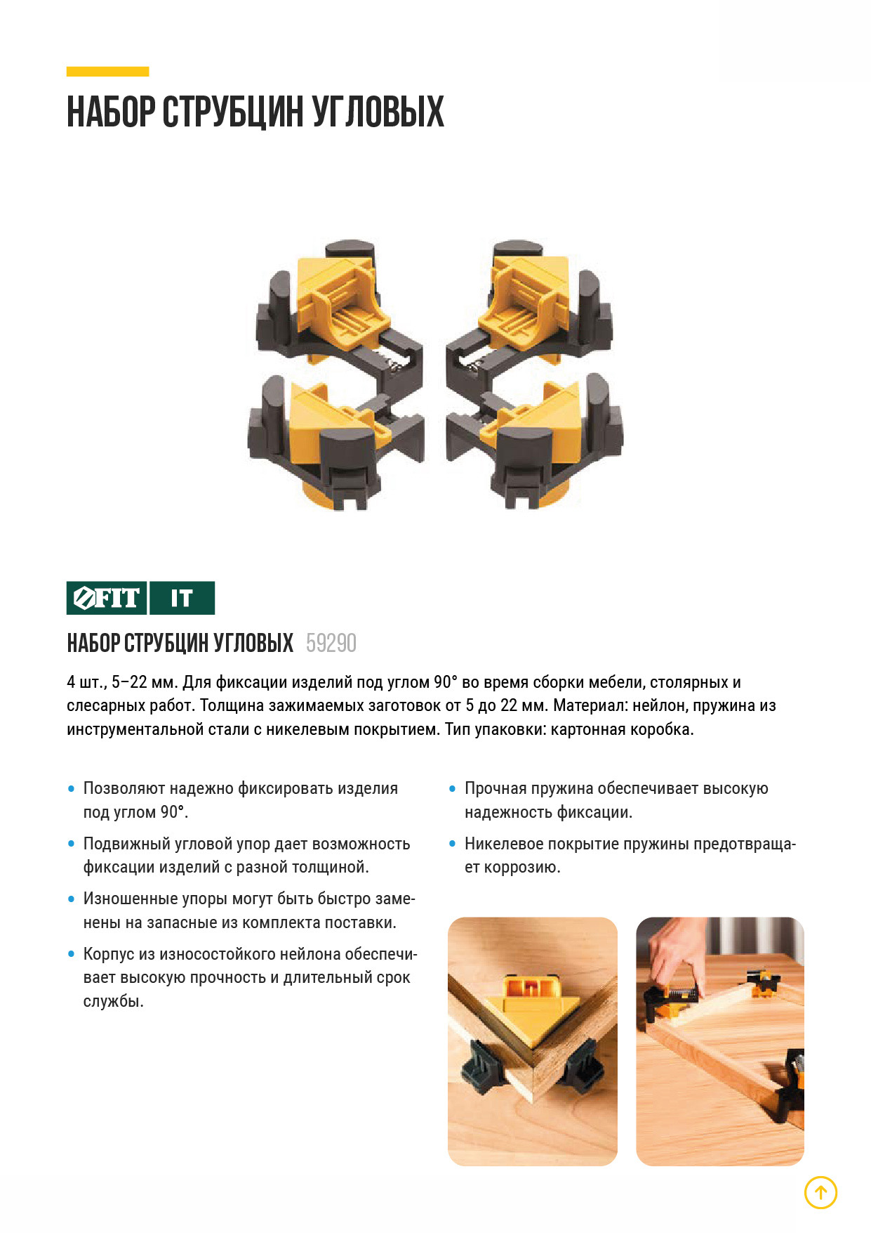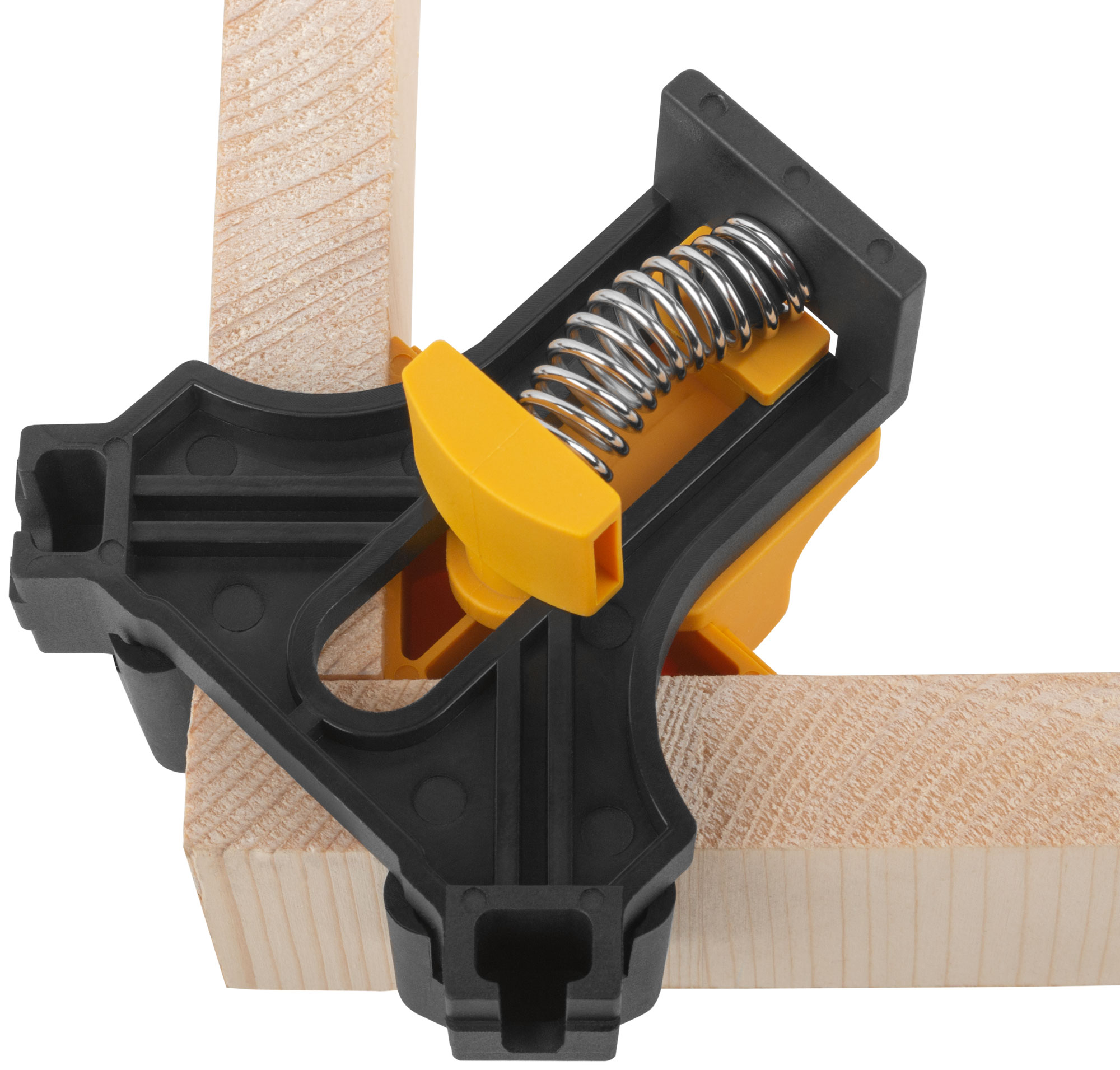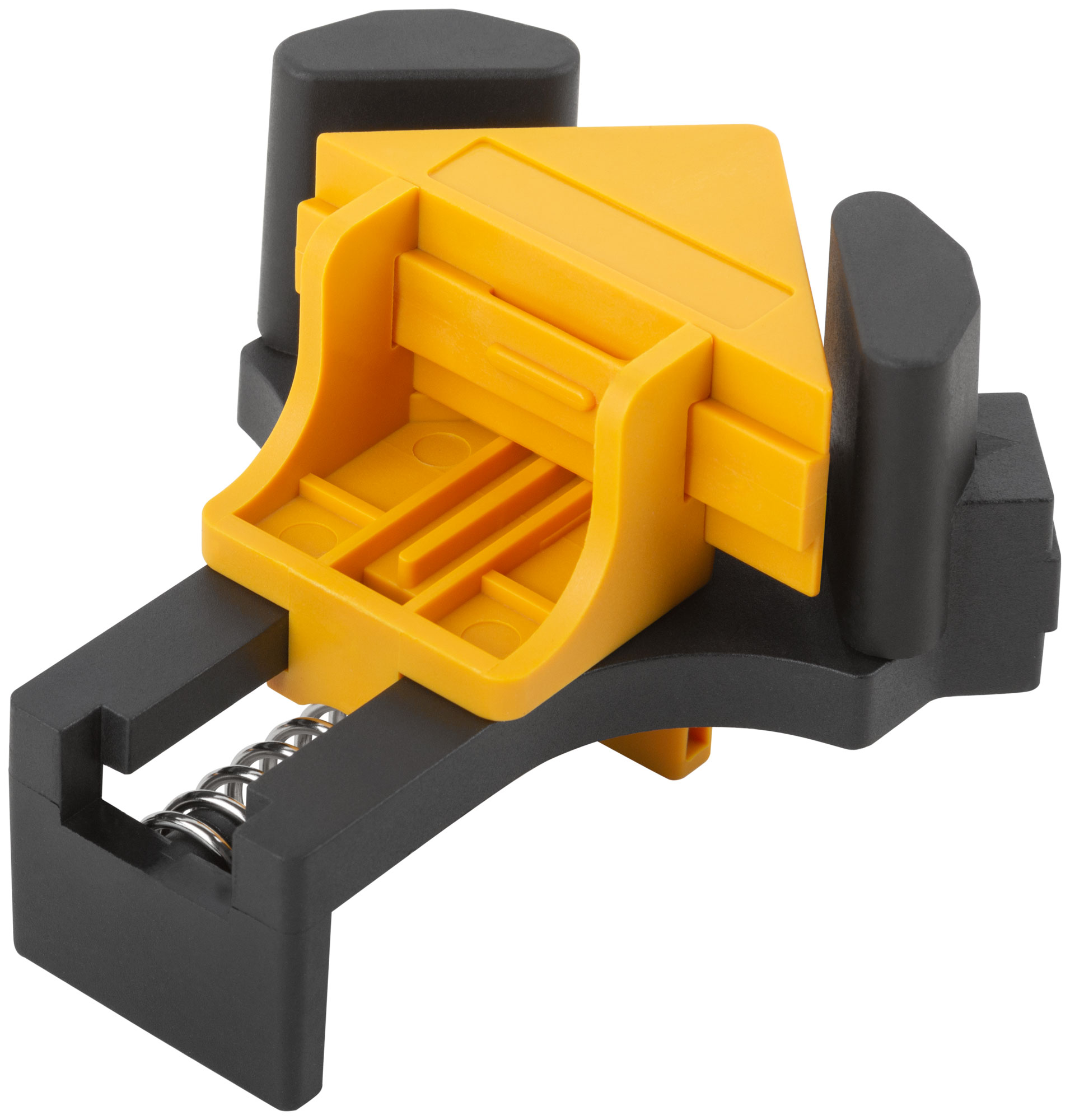 Для фиксации изделий под углом 90° во время сборки мебели, столярных и слесарных работ. Толщина зажимаемых заготовок от 5 до 22 мм. Материал: нейлон, пружина из инструментальной стали с никелевым покрытием. Упаковка: картонная коробка.