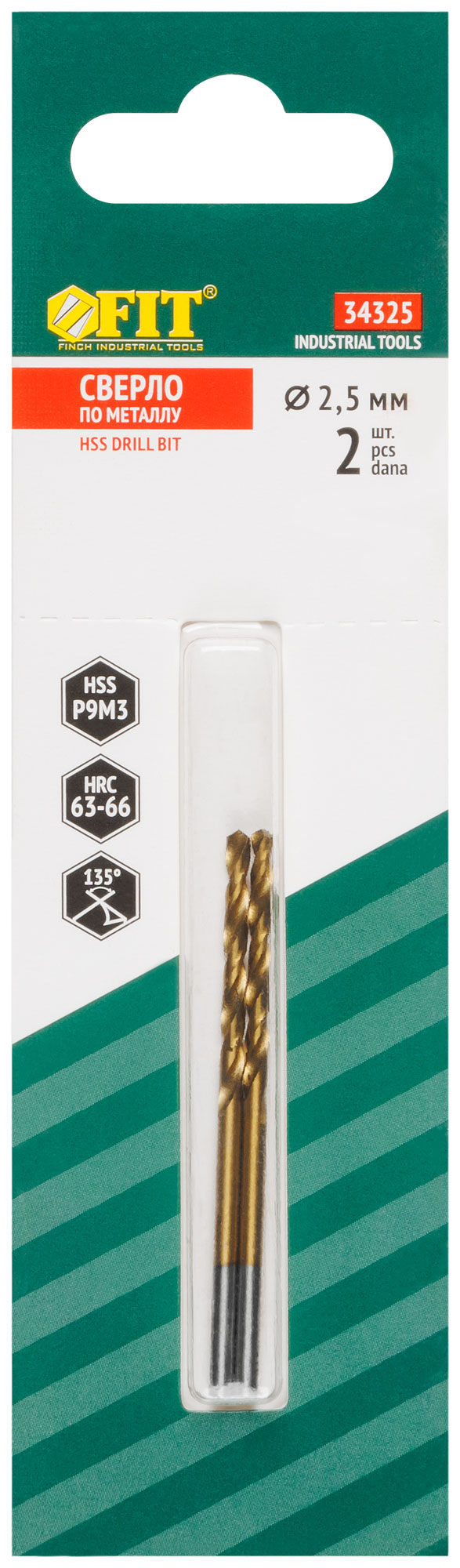 Сверла HSS по металлу, титановое покрытие, в блистере 2,5х57 мм (2 шт.)