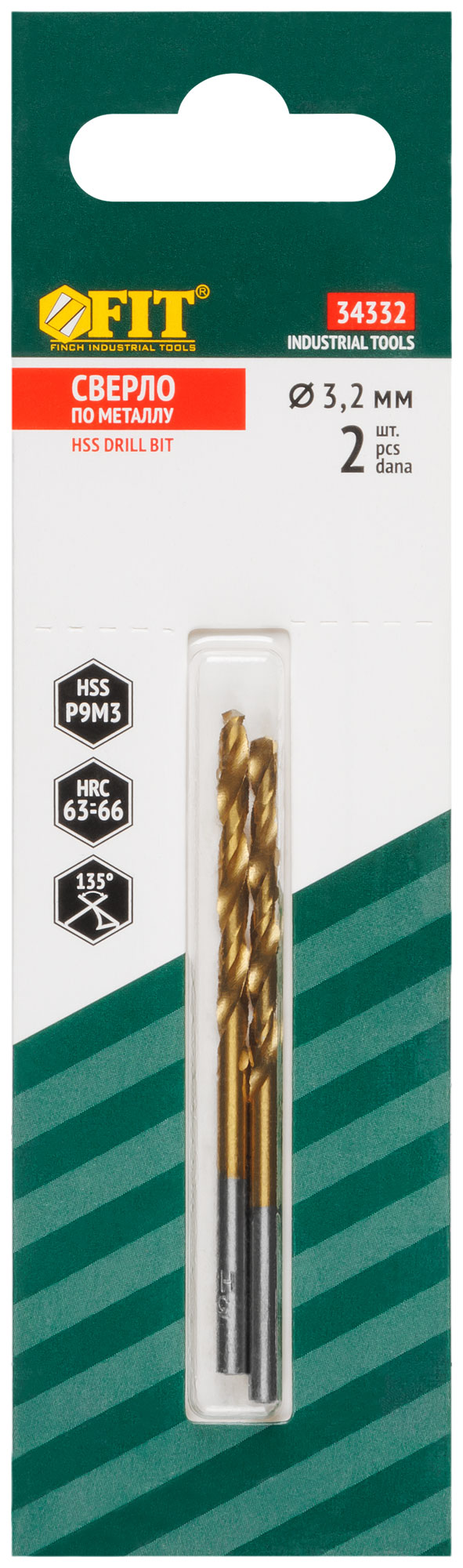 Сверла HSS по металлу, титановое покрытие, в блистере 3,2х65 мм (2 шт.)