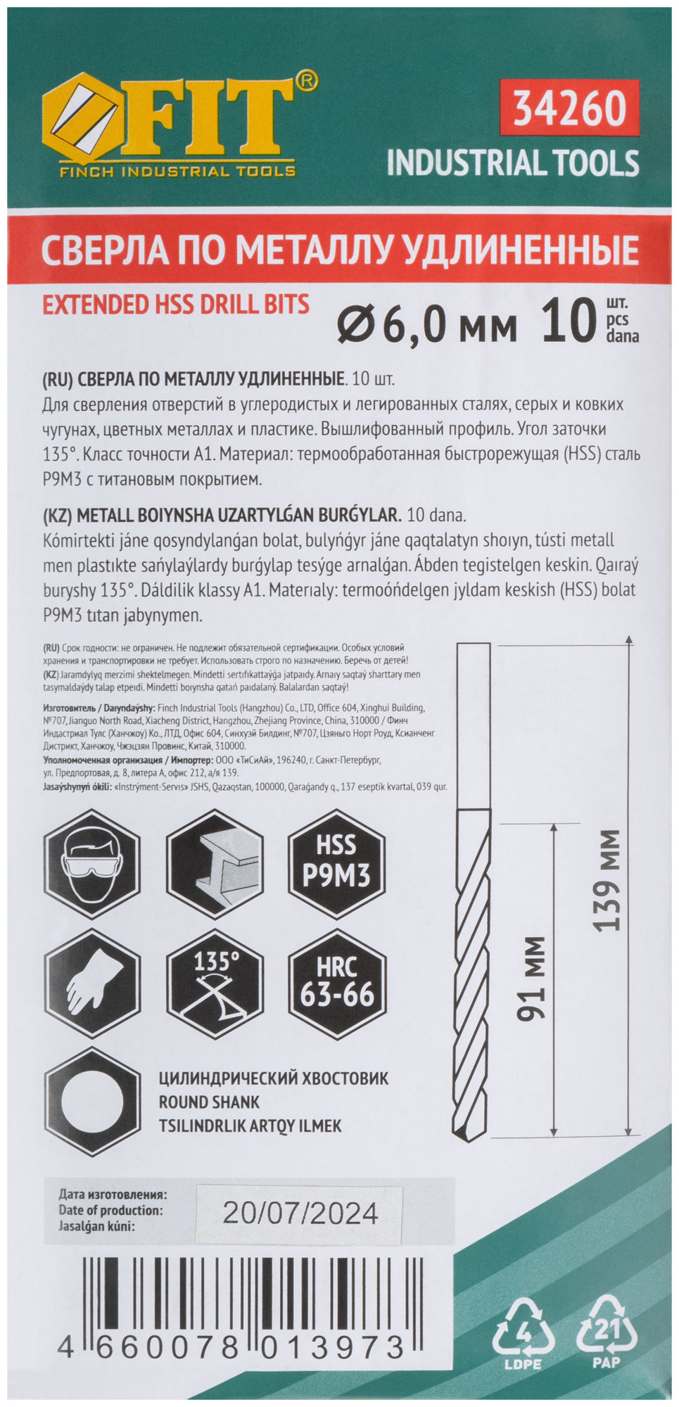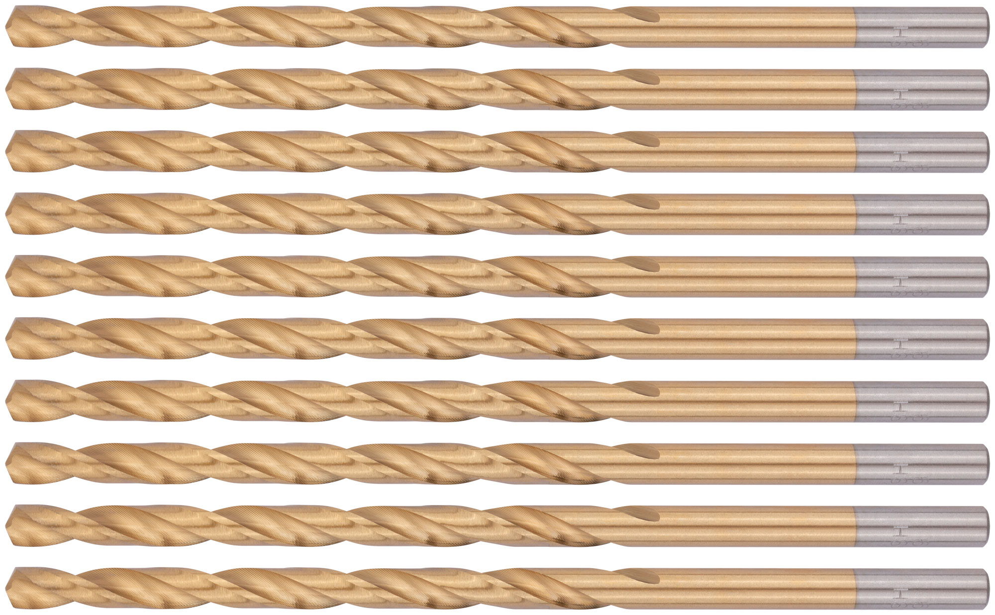 Сверла HSS по металлу, удлиненные, титановое покрытие 6,0х139 мм (10 шт.)