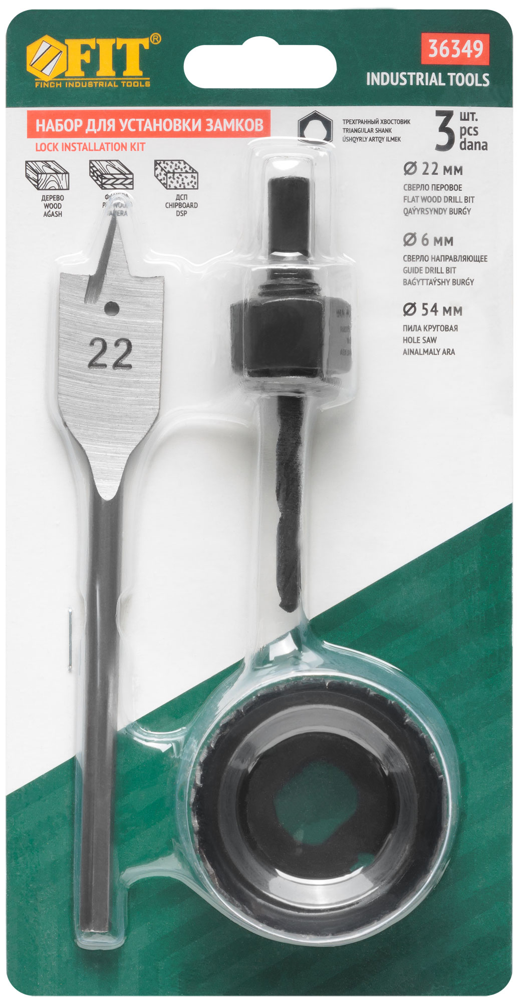 Сверла наборные для замков, набор 3 шт. (22/54 мм)