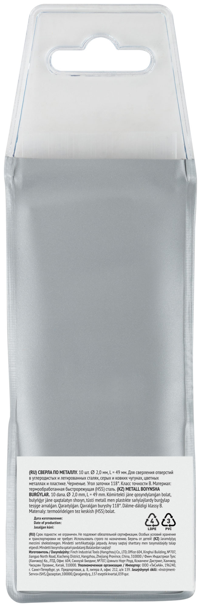 Сверла по металлу HSS черненые 2,0x49 мм (10 шт.)