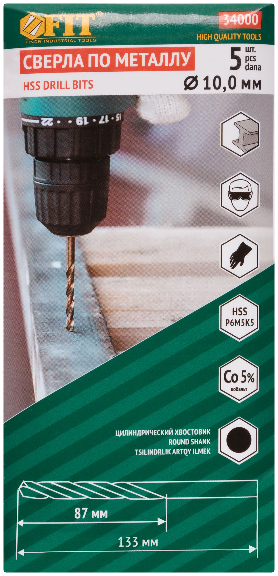 Сверла по металлу HSS с добавкой кобальта 5% Профи 10,0х133 мм ( 5 шт.)