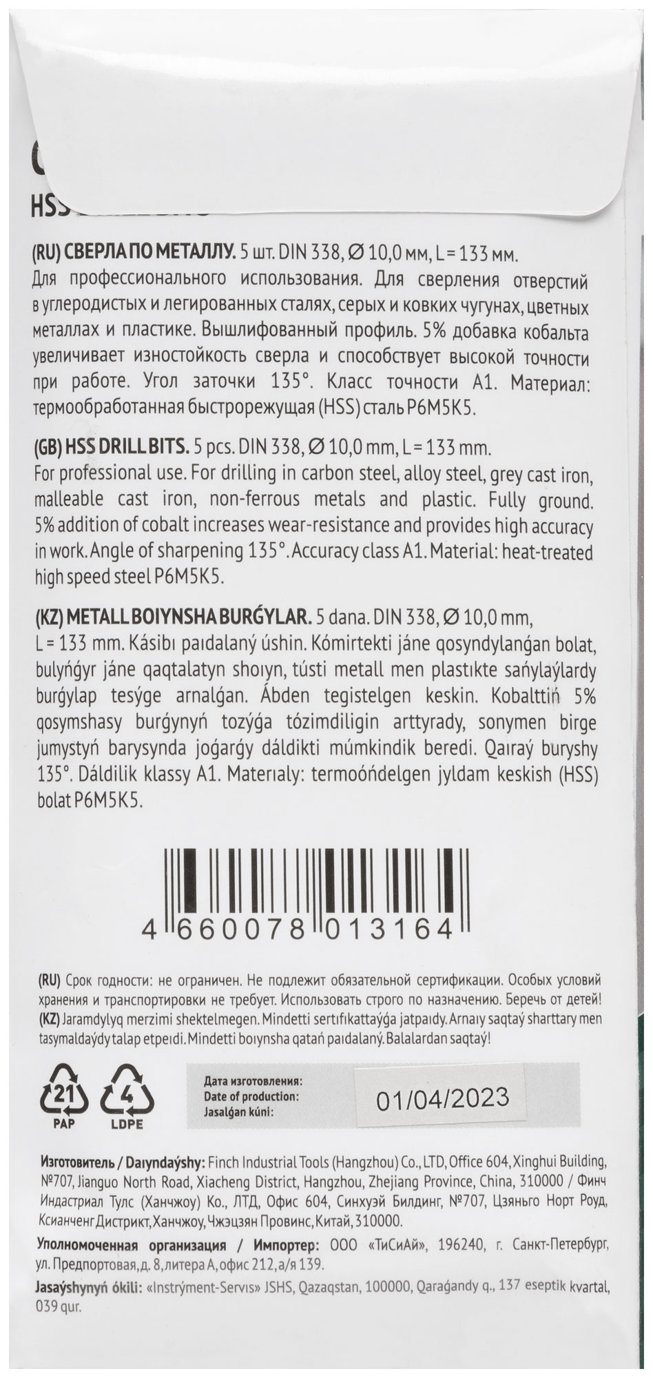 Профи. DIN338. С 5% добавкой кобальта. Для профессионального использования. Класс точности А1. Угол заточки 135 градусов. Цилиндрический хвостовик. Вышлифованный профиль. Износостойкие. Материал: быстрорежущая (HSS) сталь Р6М5К5. Упаковка: картонный конверт.
